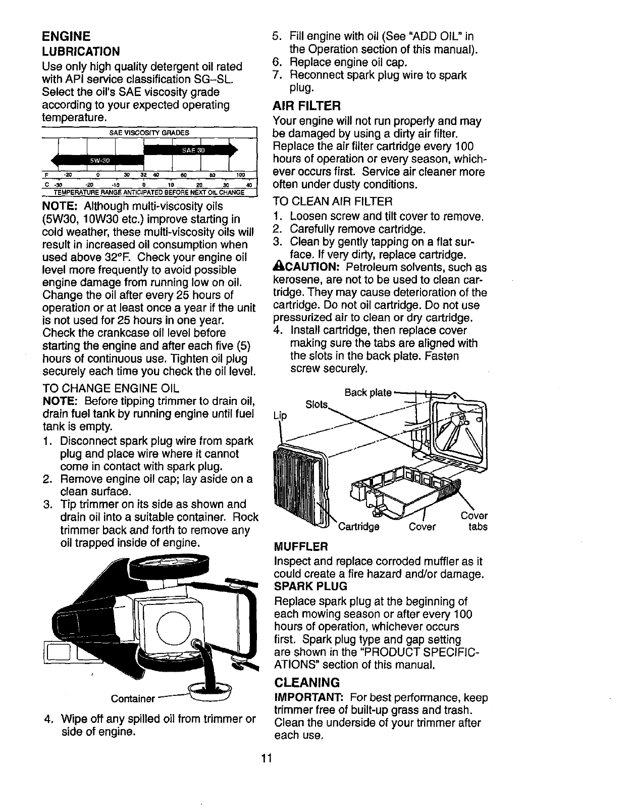 federa! lands. A spark arrester for the muffler is available through your nearest Sears