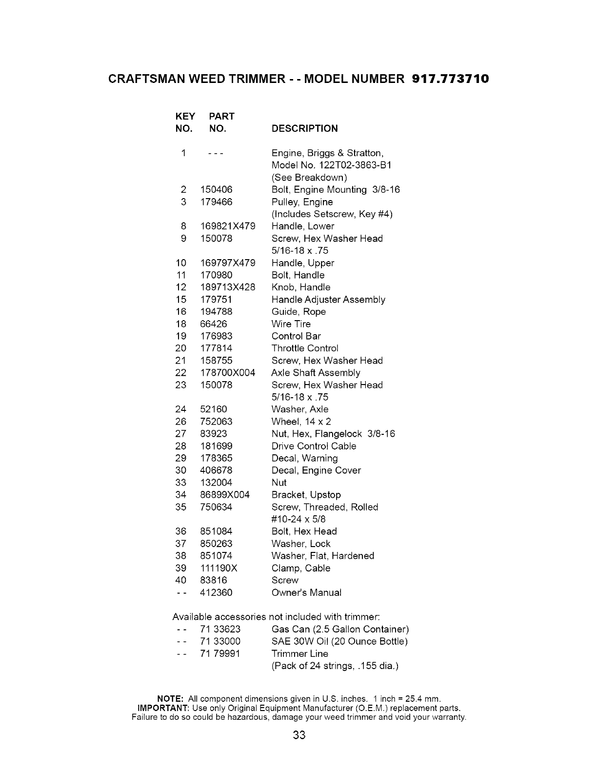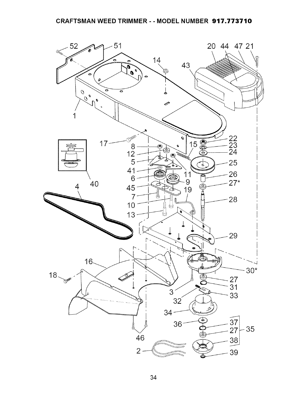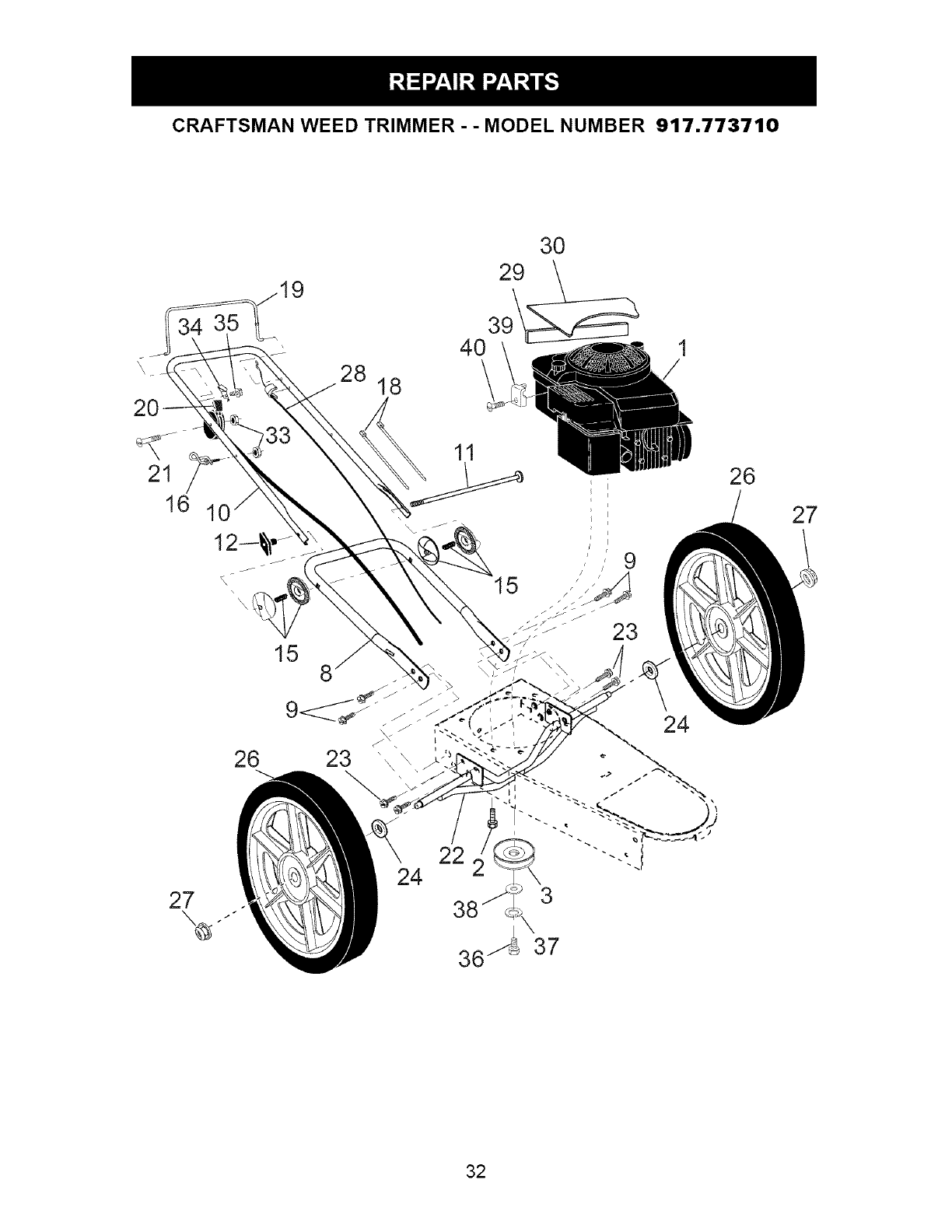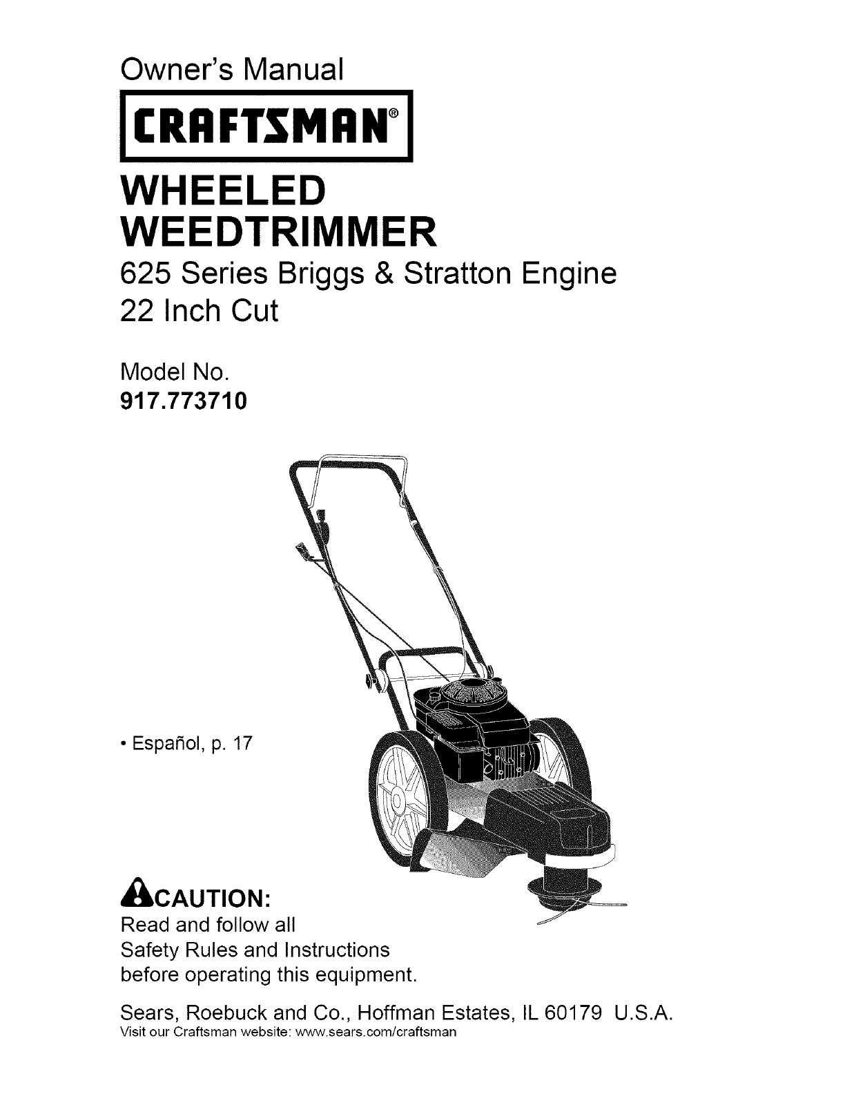 User Manual: Craftsman 917773710 917773710 CRAFTSMAN WHEELED WEED TRIMMER - Manuals and Guides View the owners manual for your CRAFTSMAN WHEELED WEED TRIMMER #917773710. Home:Lawn & Garden Parts:Craftsman Parts:917773710 Craftsman Grass trimmer (weed wacker) Manual