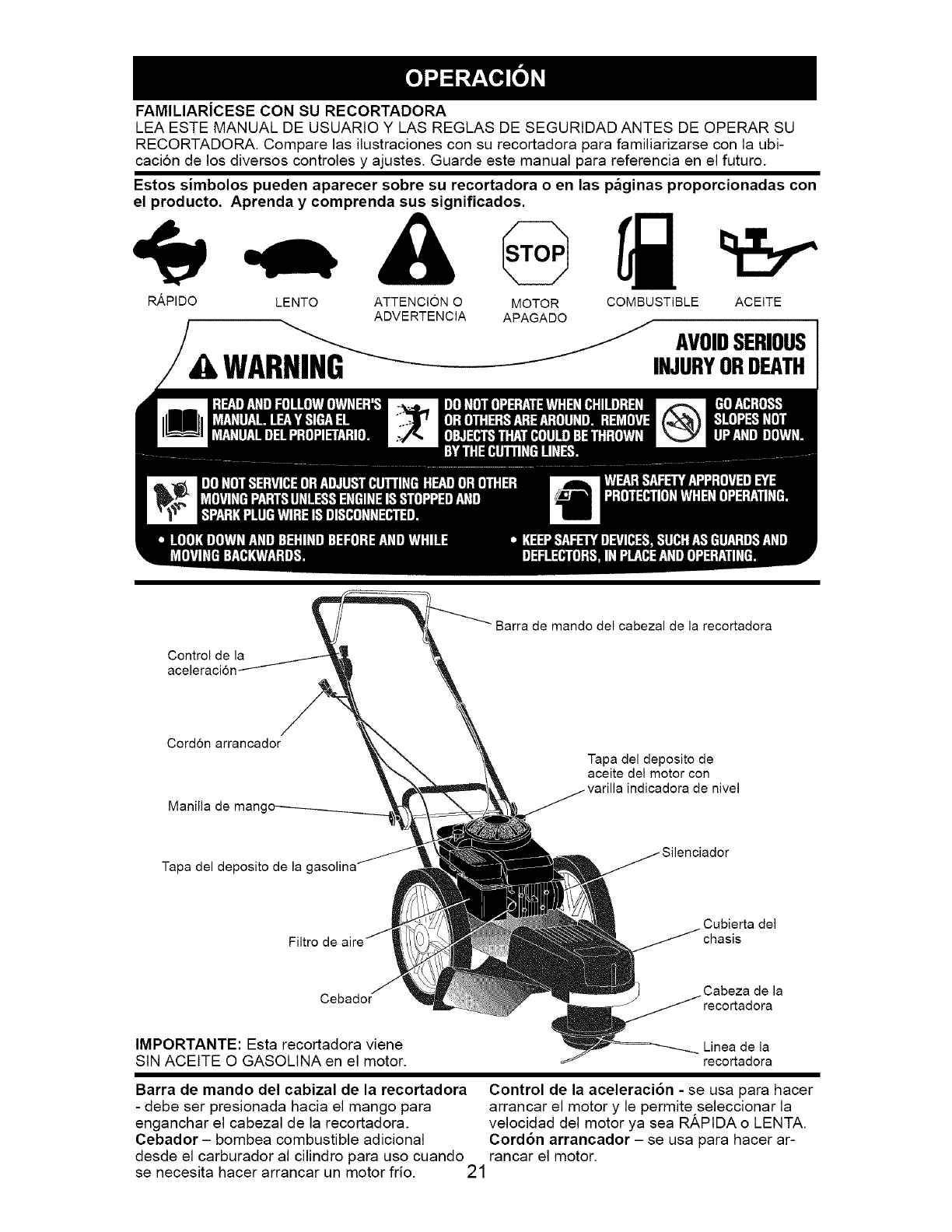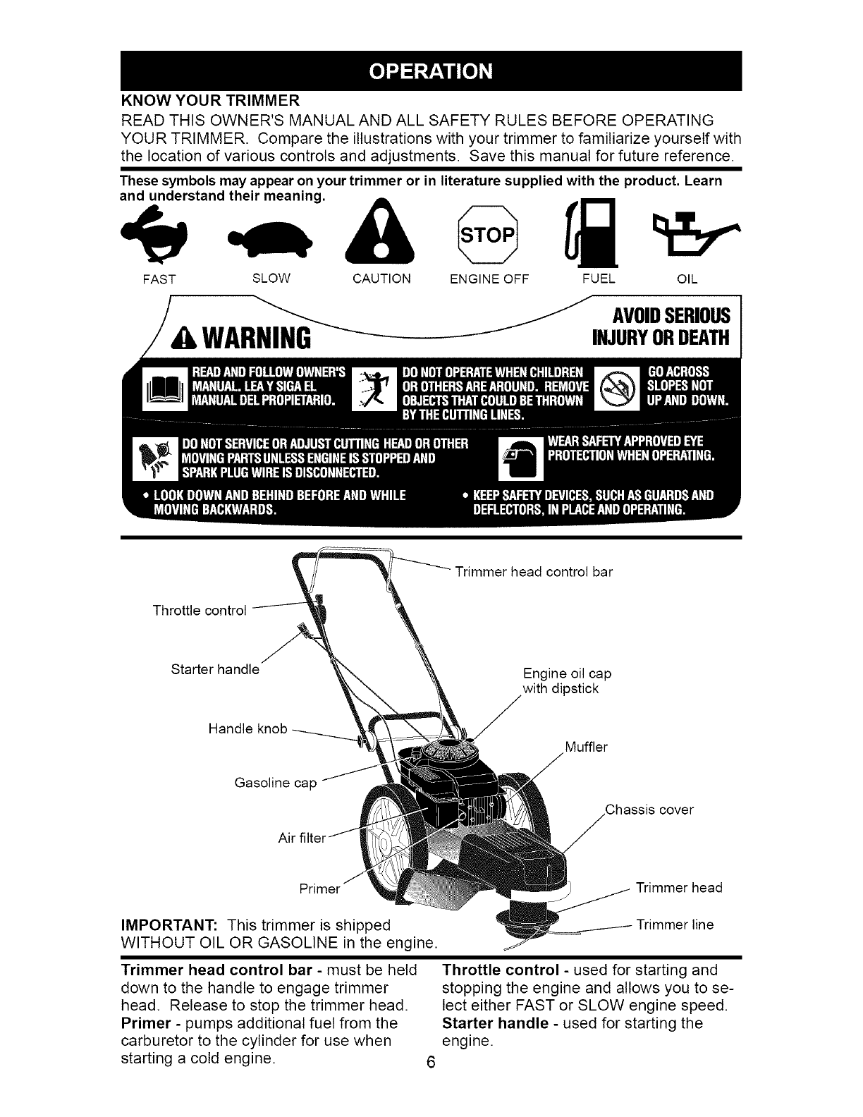 _, WARNING: This trimmer is equipped with an internal combustion engine and should