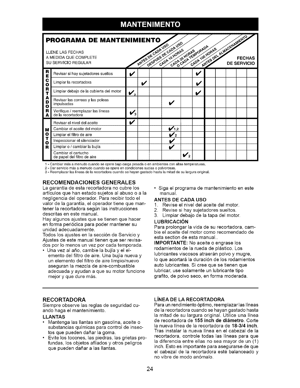 tained, lubricated, and tuned up according to the operating and maintenance instruc-