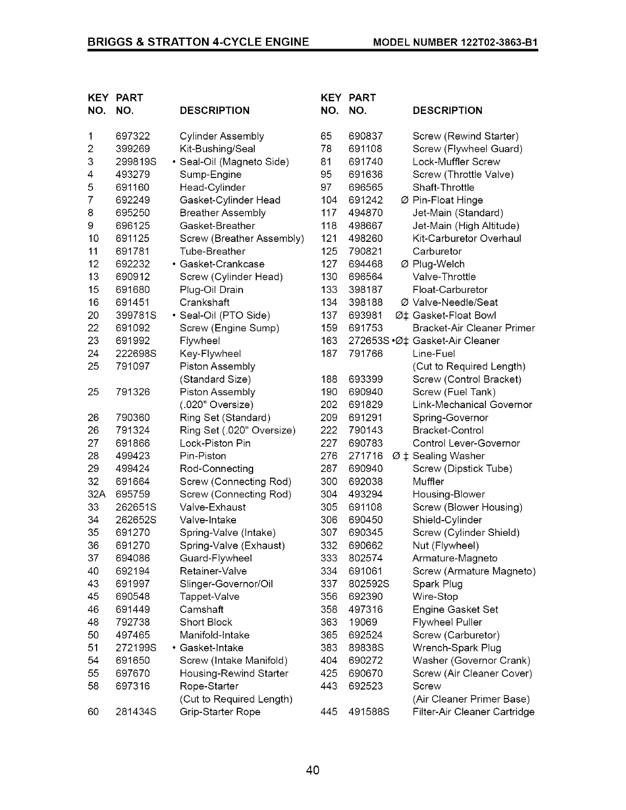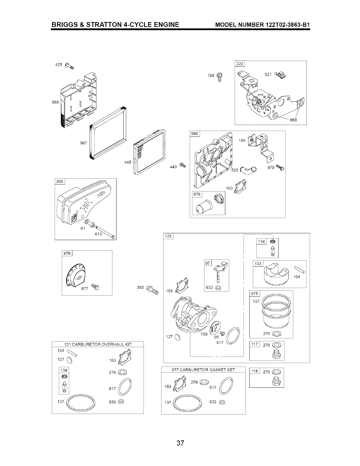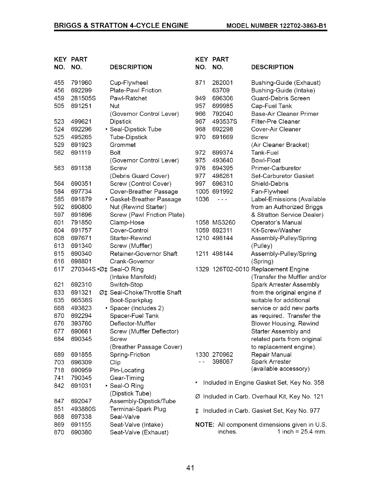 O Included in Carb. Overhaul Kit, Key No. 121