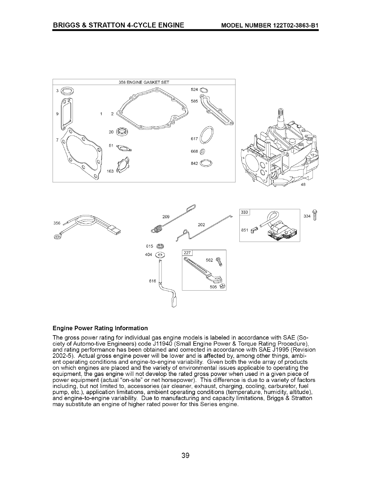 • Included in Engine Gasket Set, Key No. 358