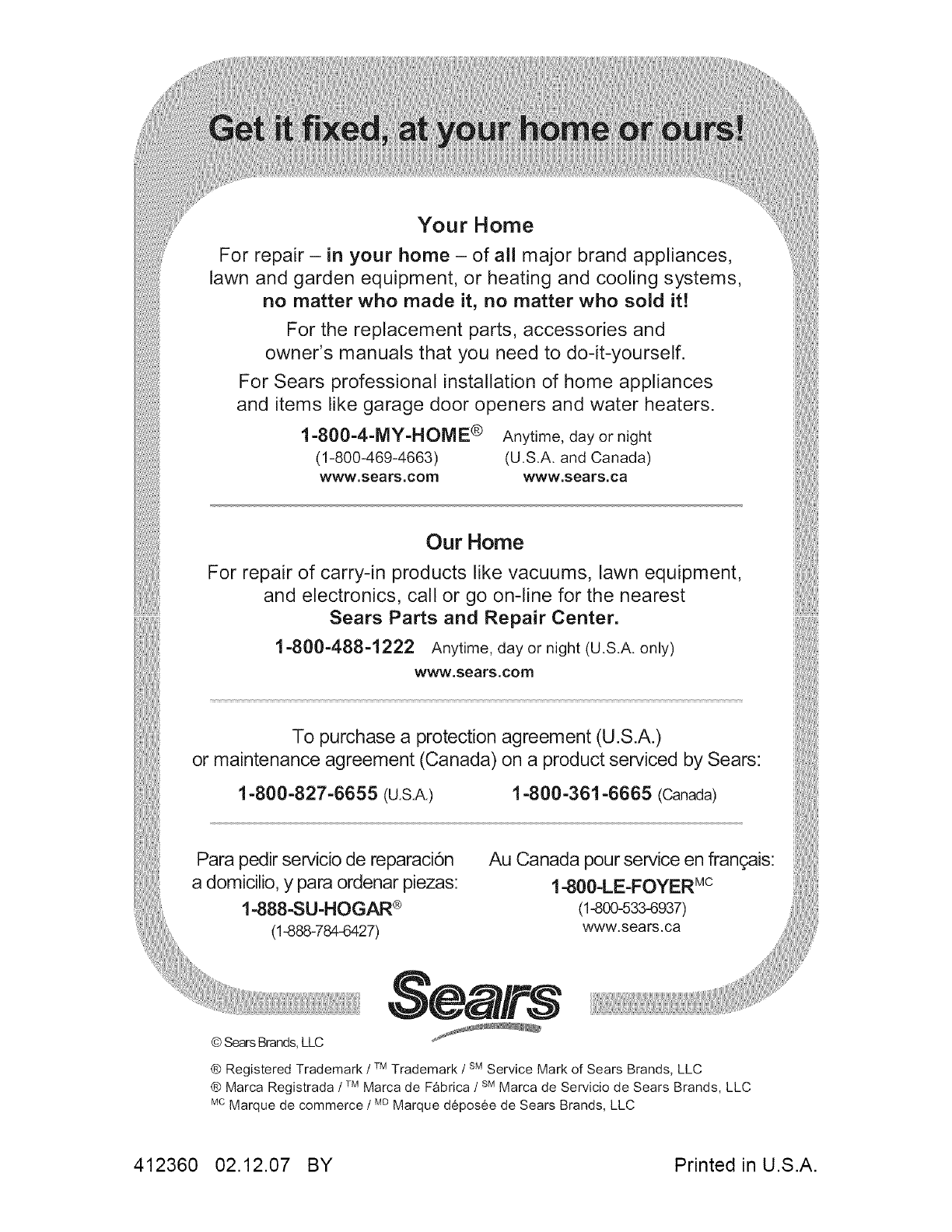 ® Marca Registrada /TMMarca de Fabrica /sM Marca de Servicio de Sears Brands, LLC