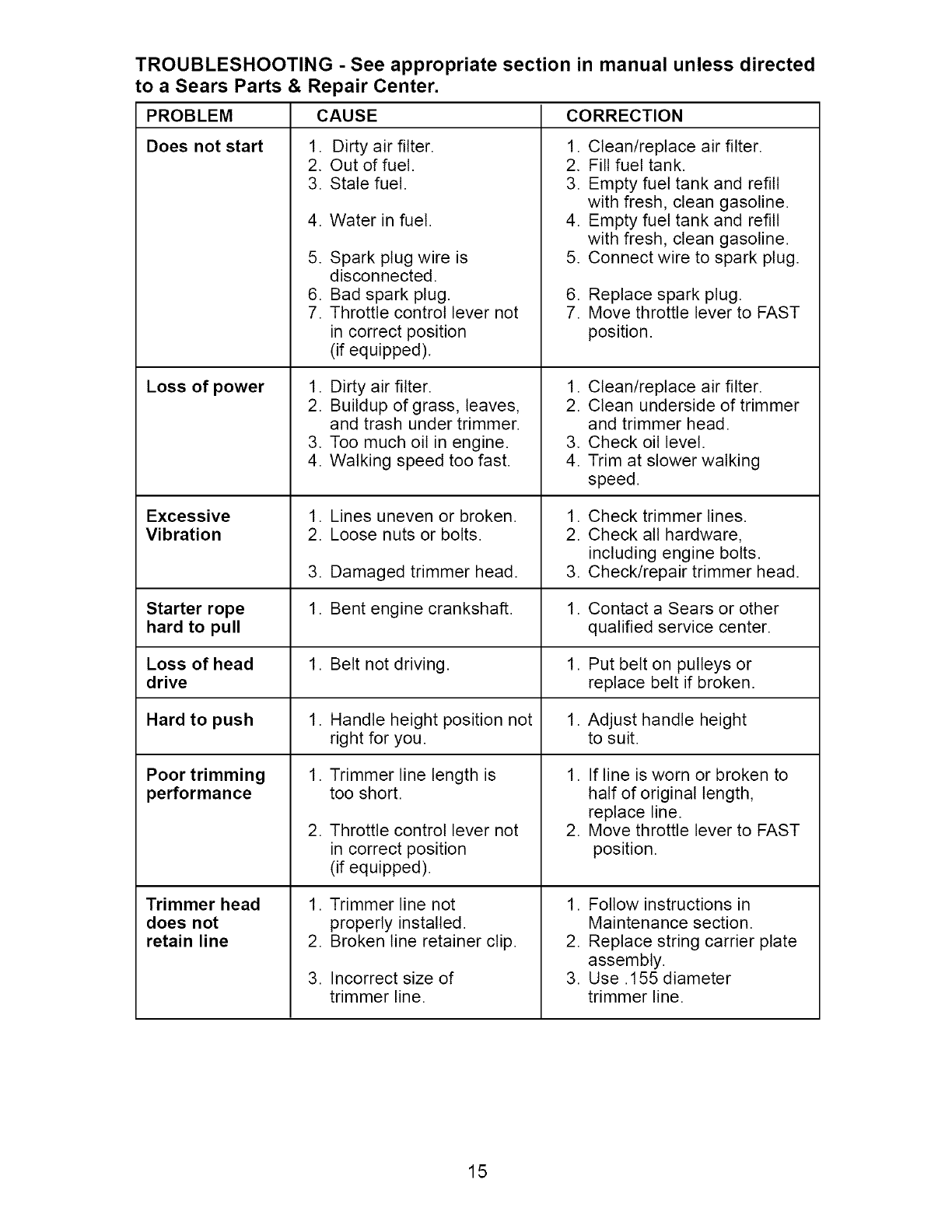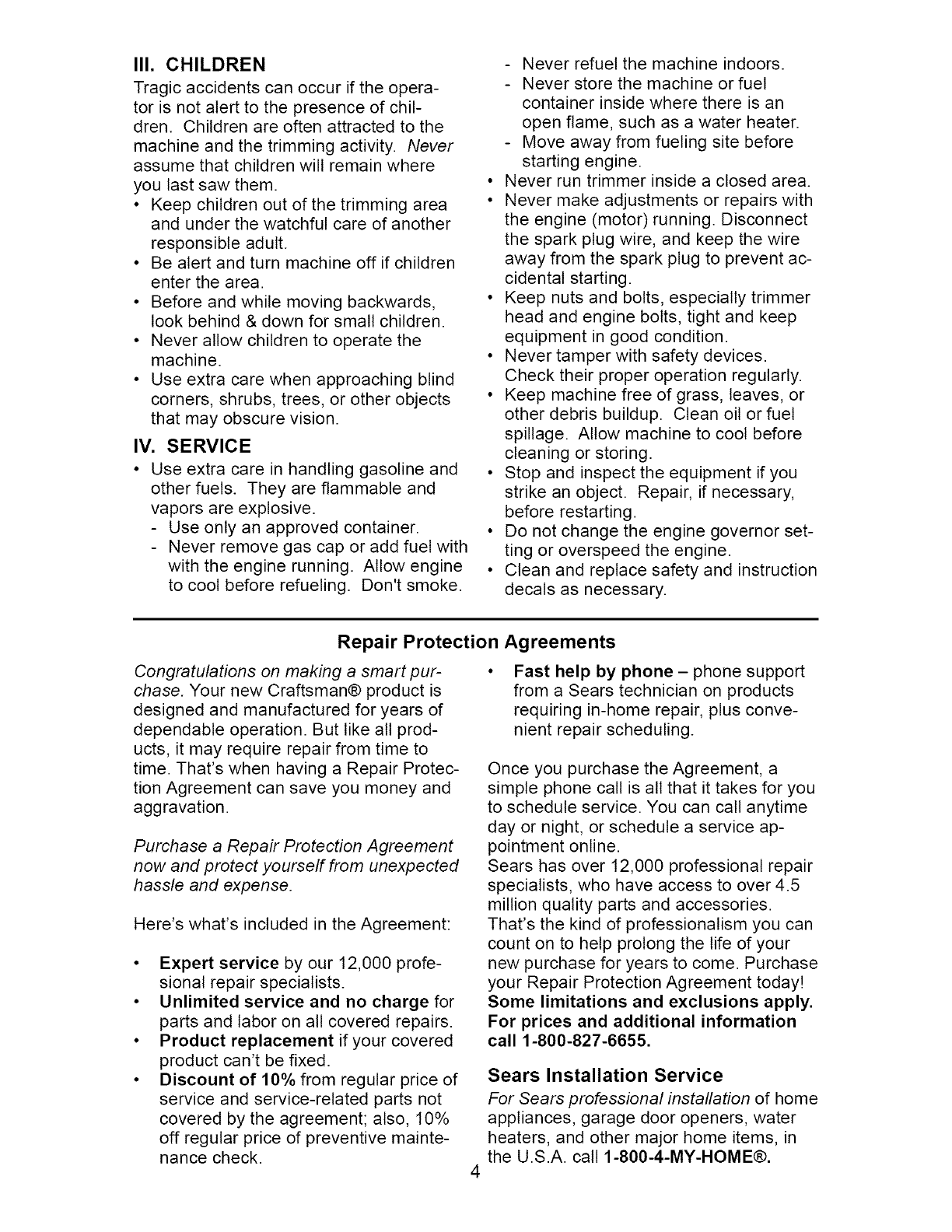 Sears Service .......................... Back Cover