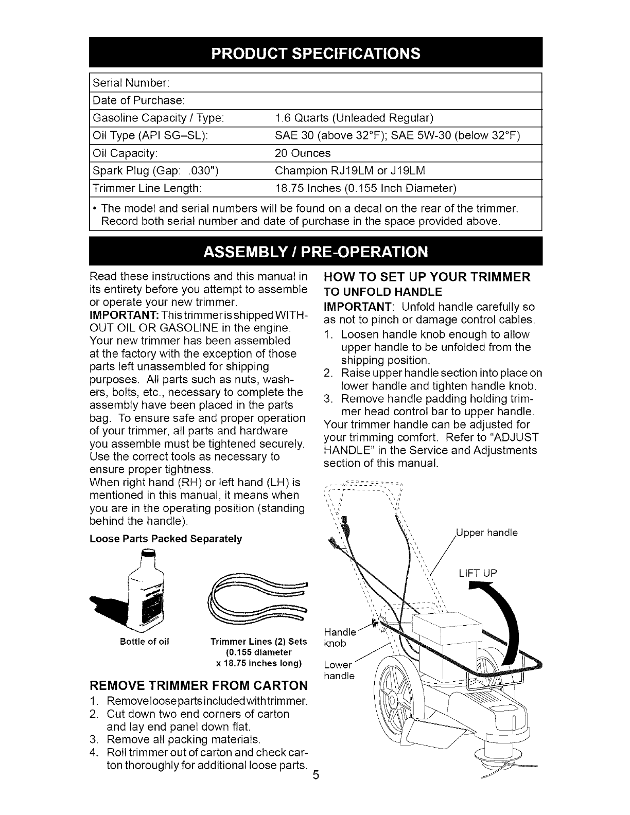 Assembly /Pre-Operation ........................ 5