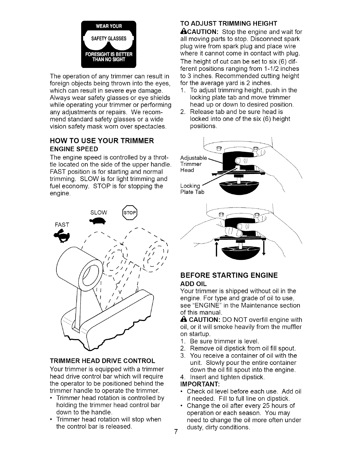 glasses or eye shields while operating your trimmer or performing any