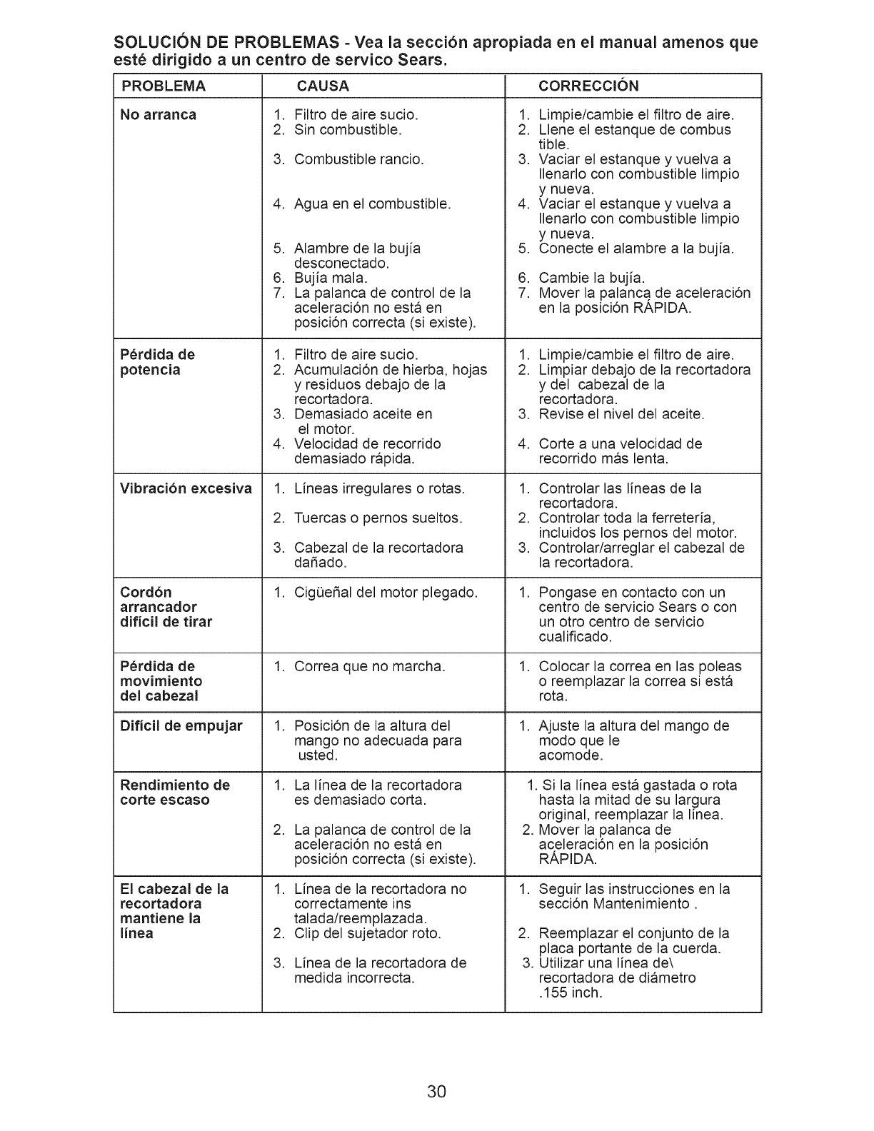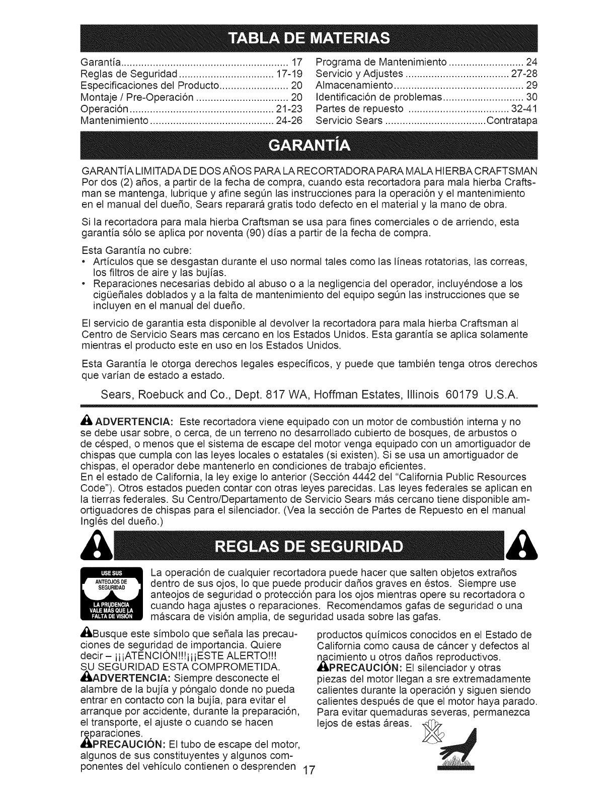 Sears Service .......................... Back Cover