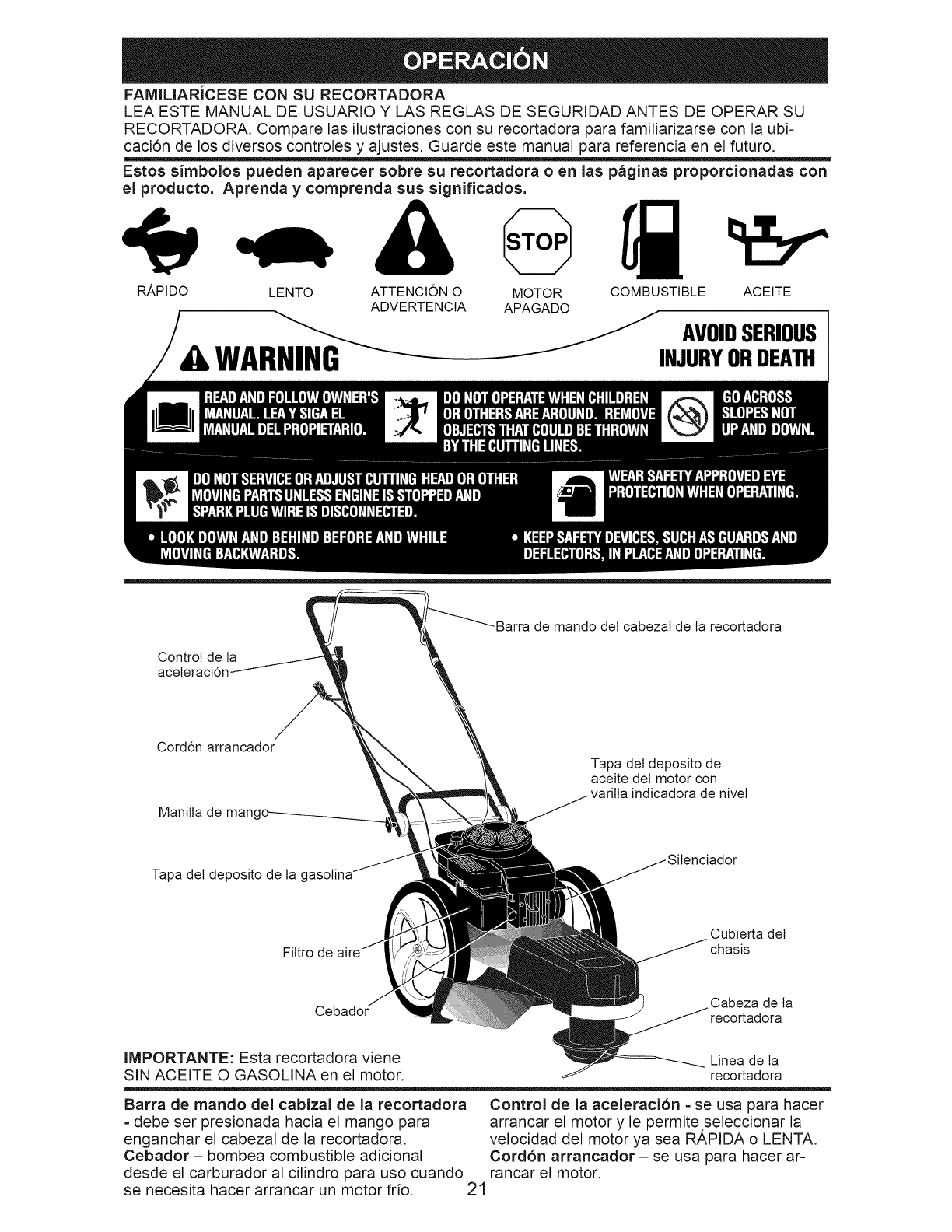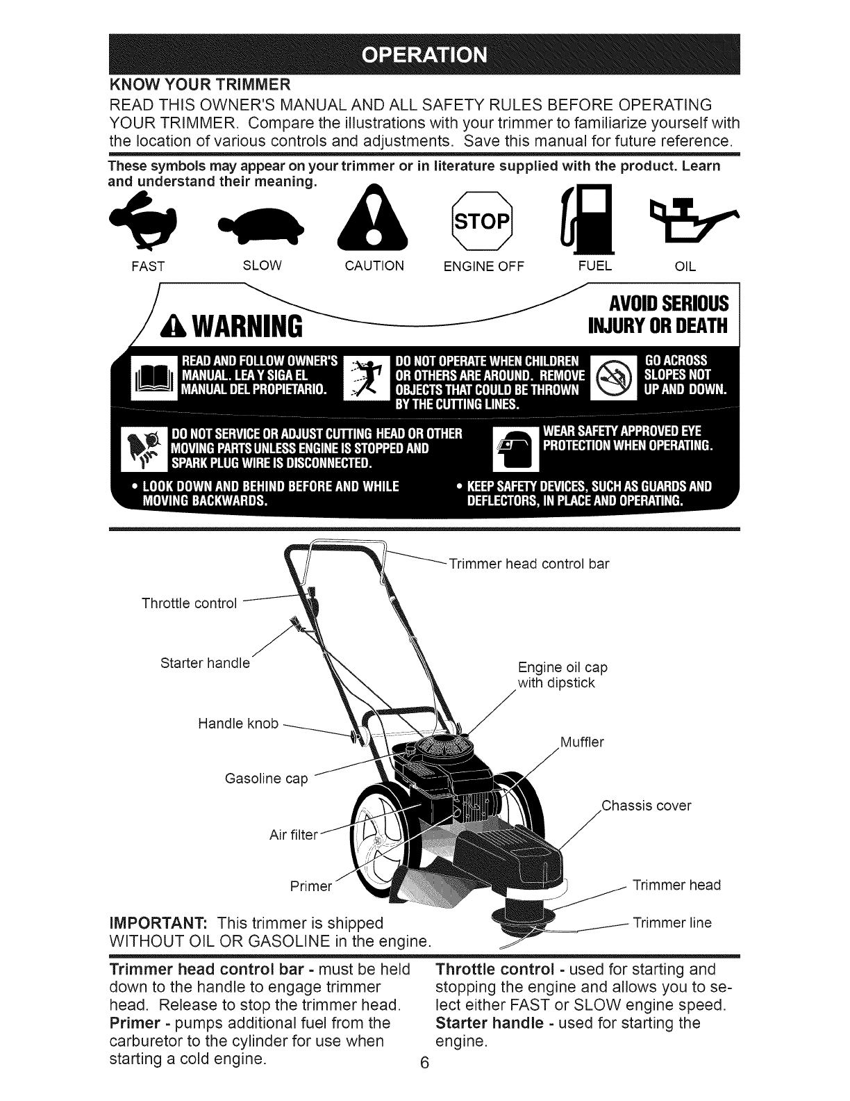 A WARNING" This trimmer is equipped with an internal combustion engine and should
