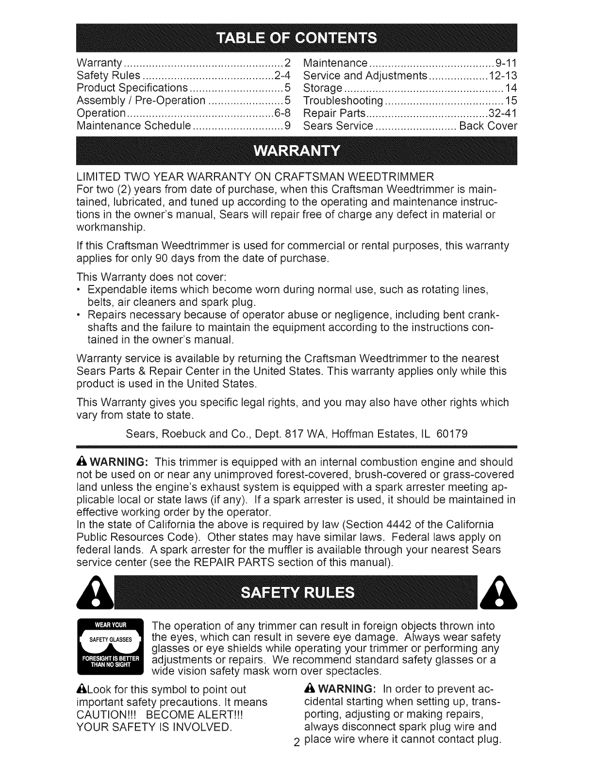 LIMITED TWO YEAR WARRANTY ON CRAFTSMAN WEEDTRIMMER