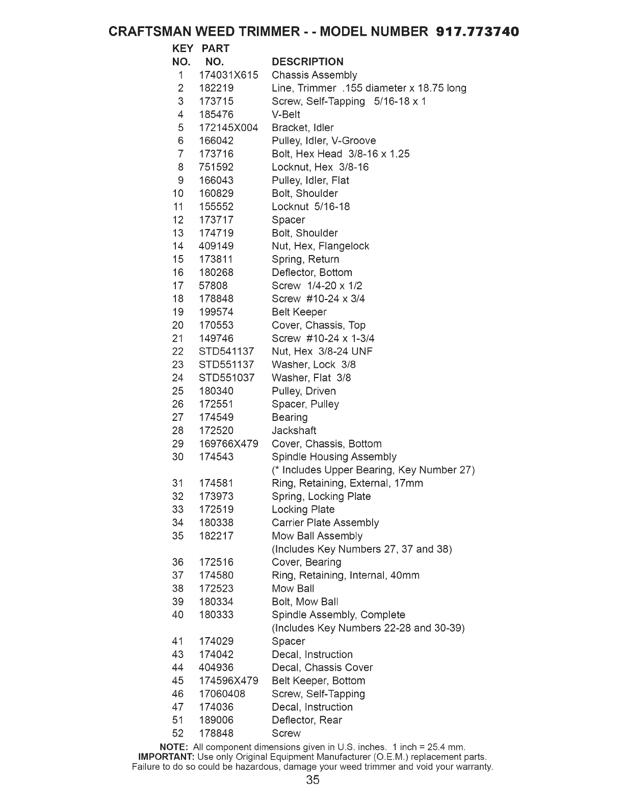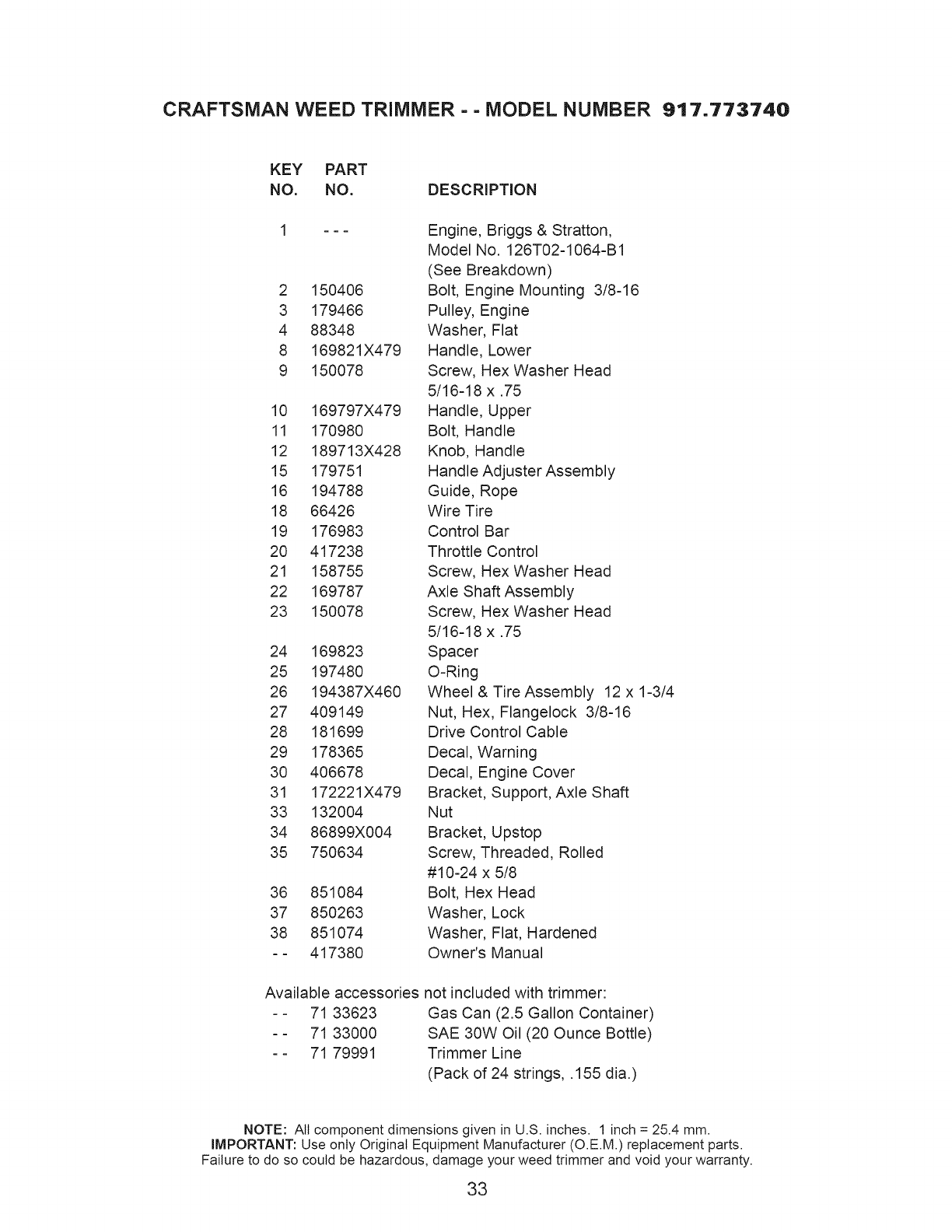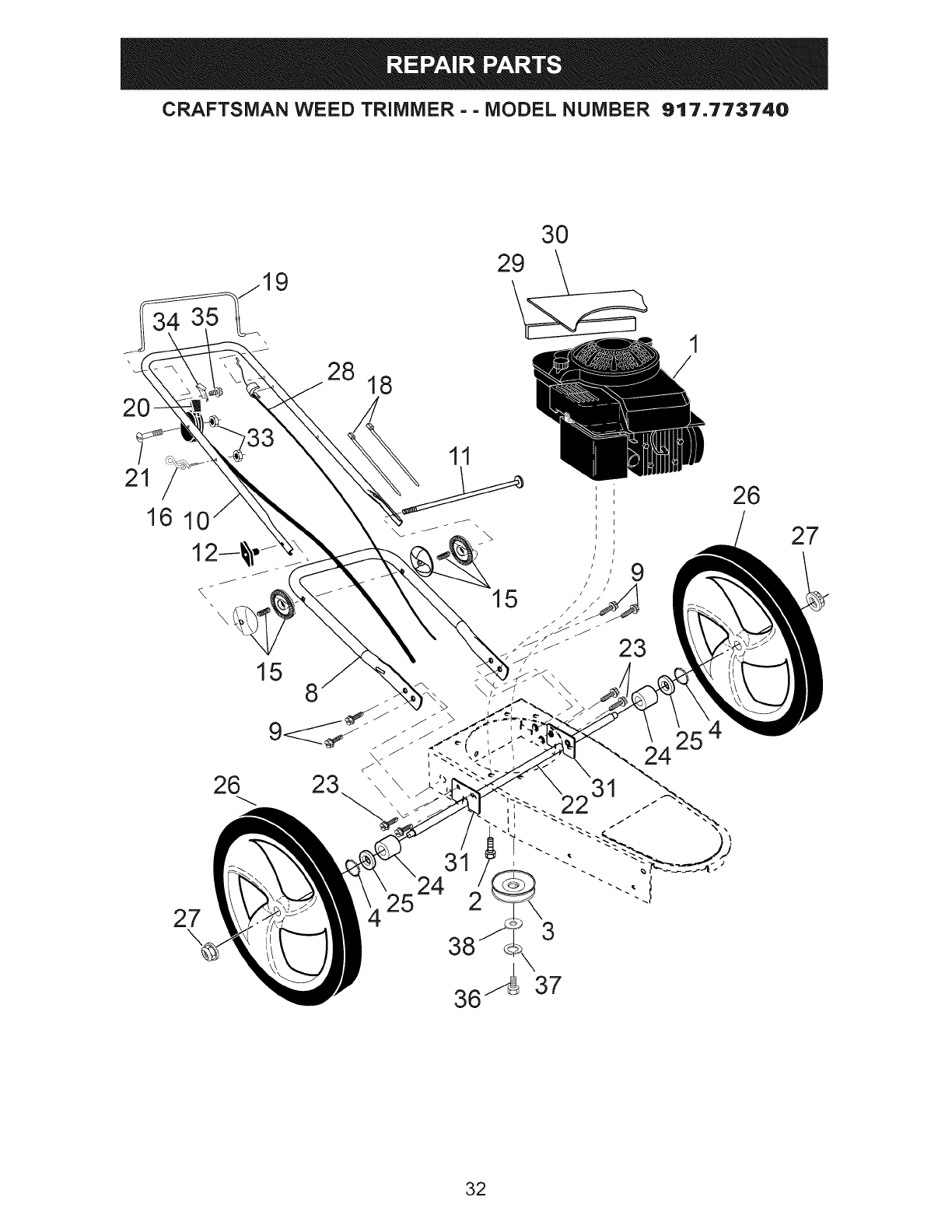 User Manual: Craftsman 917773740 917773740 CRAFTSMAN WHEELED WEED TRIMMER - Manuals and Guides View the owners manual for your CRAFTSMAN WHEELED WEED TRIMMER #917773740. Home:Lawn & Garden Parts:Craftsman Parts:917773740 Craftsman Grass trimmer (weed wacker) Manual