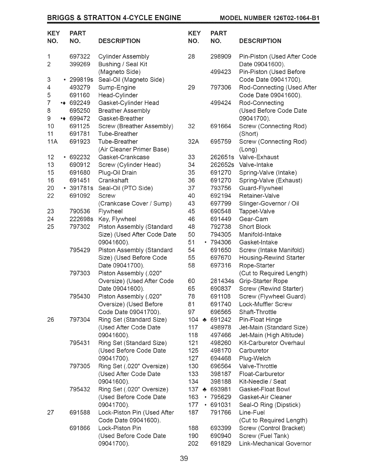 305 691108 Screw (Blower Housing) 851 493880s Terminal-Spark Plug