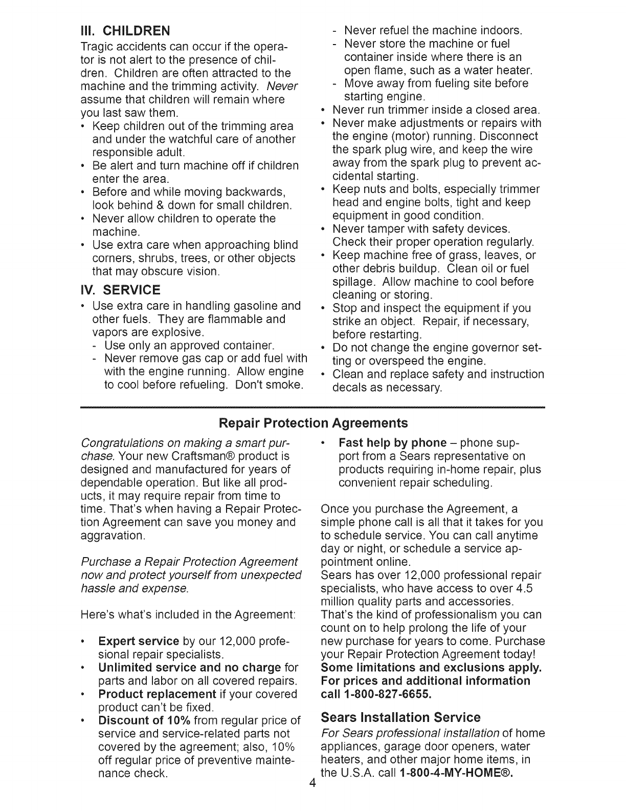 federal lands. A spark arrester for the muffler is available through your nearest Sears