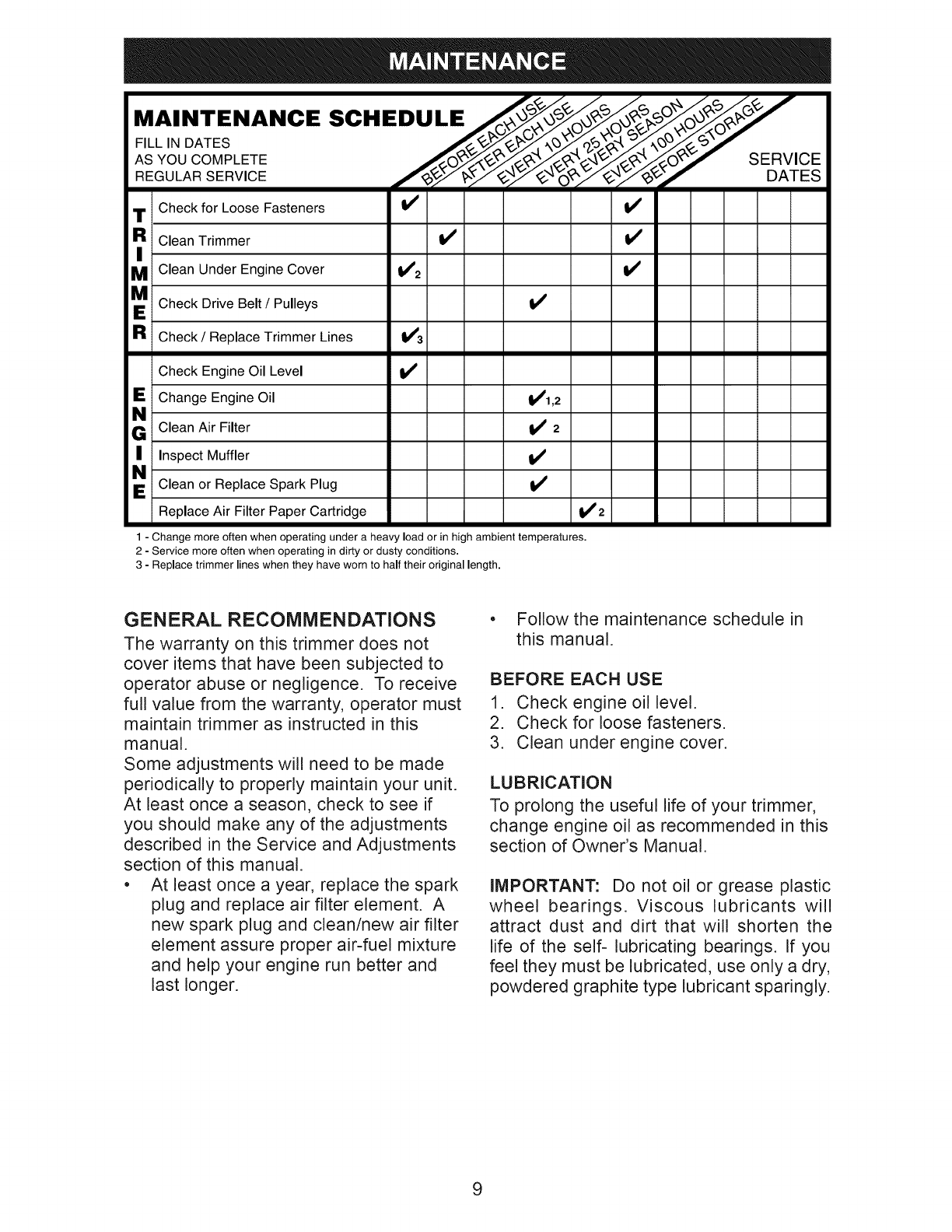 Maintenance ........................................ 9-11