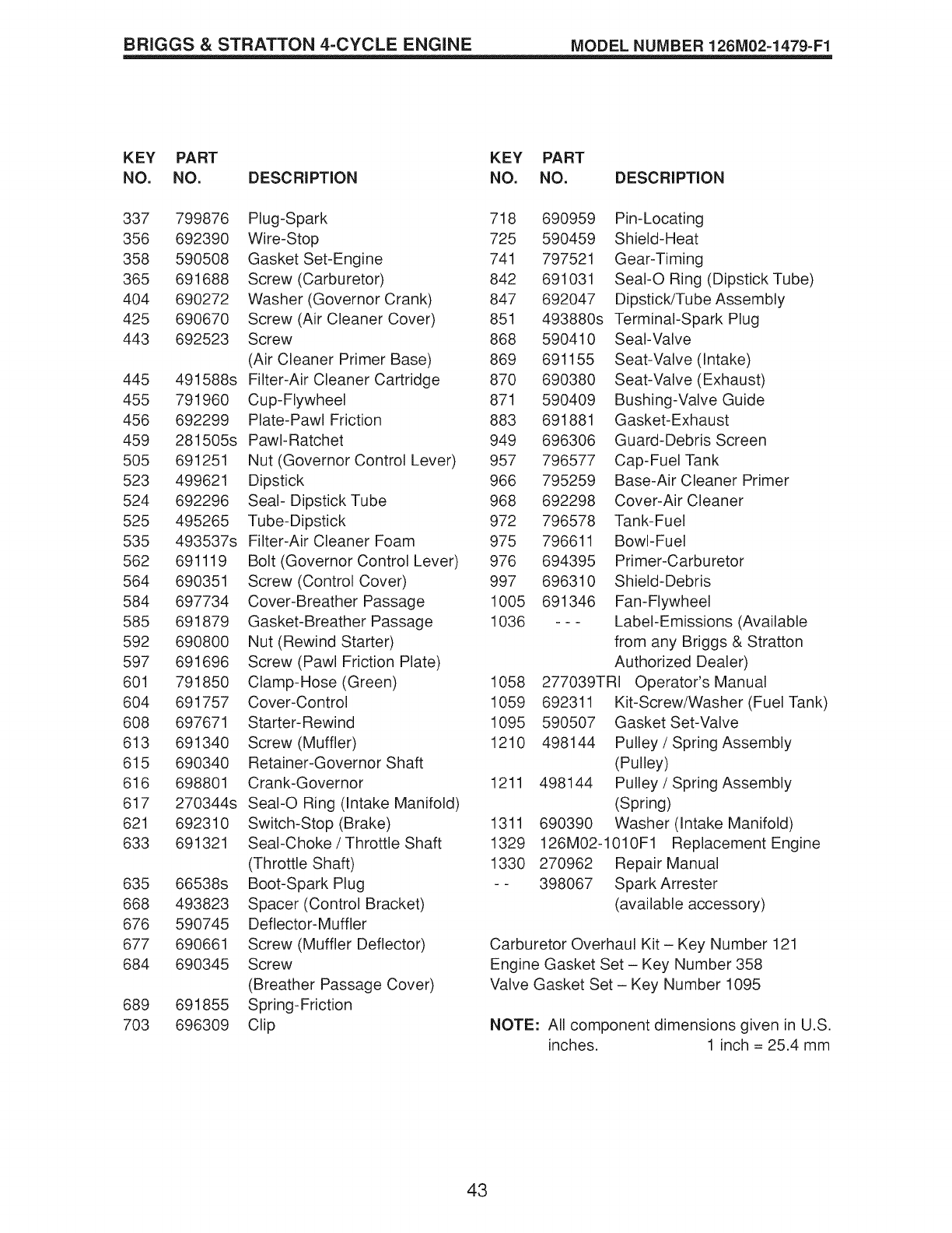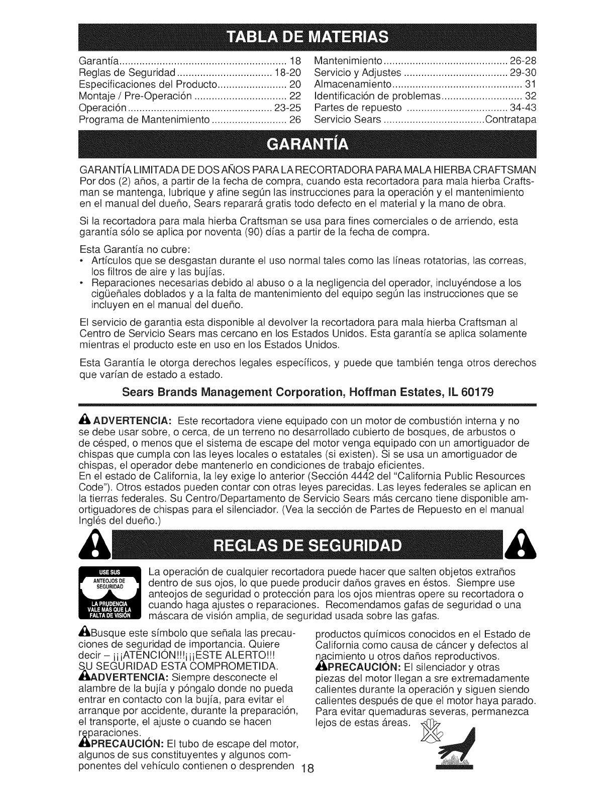 federal lands. A spark arrester for the muffler is available through your nearest Sears