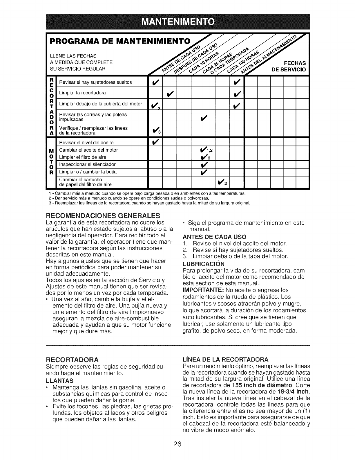 tained, lubricated, and tuned up according to the operating and maintenance instruc-