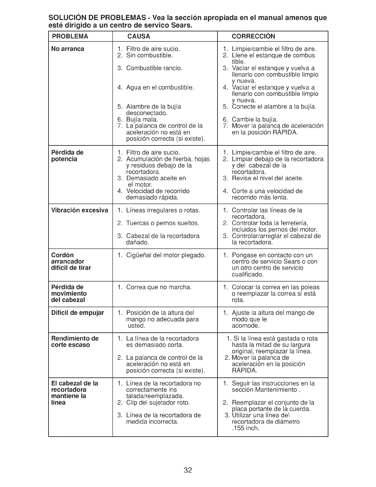 Warranty service is available by returning the Craftsman Weedtrimmer to the nearest
