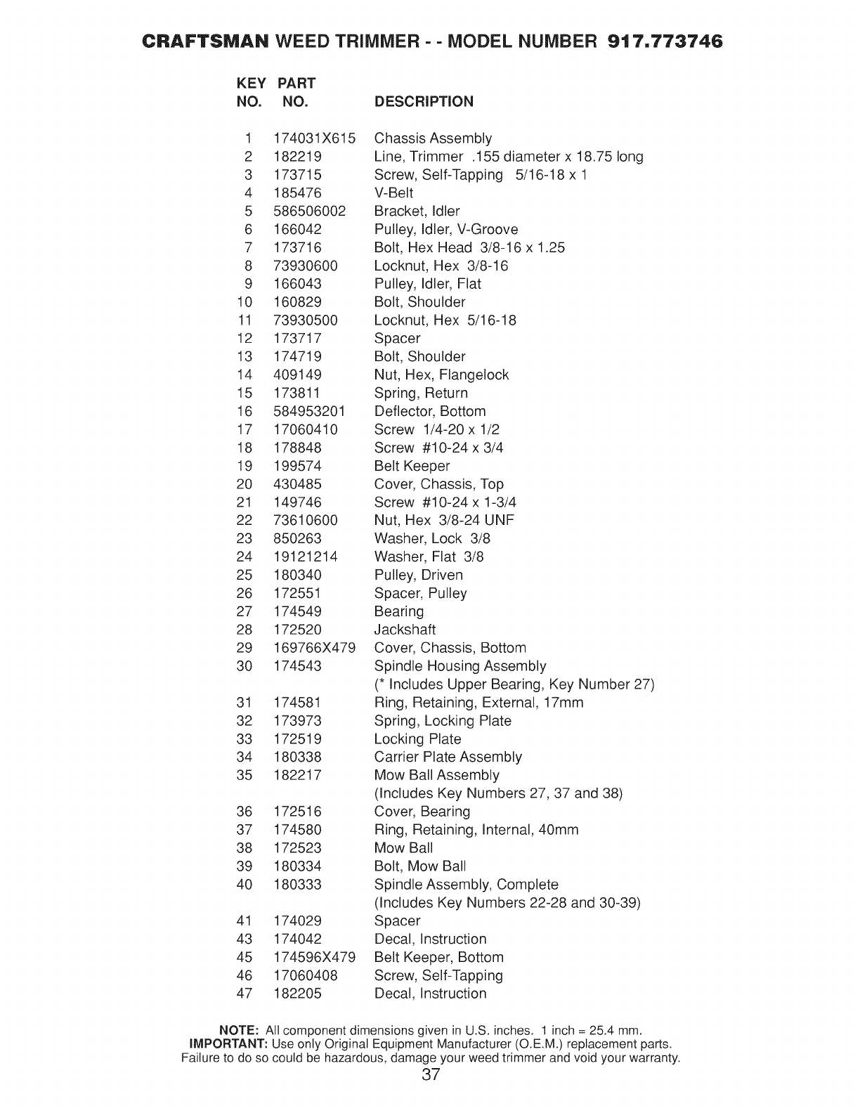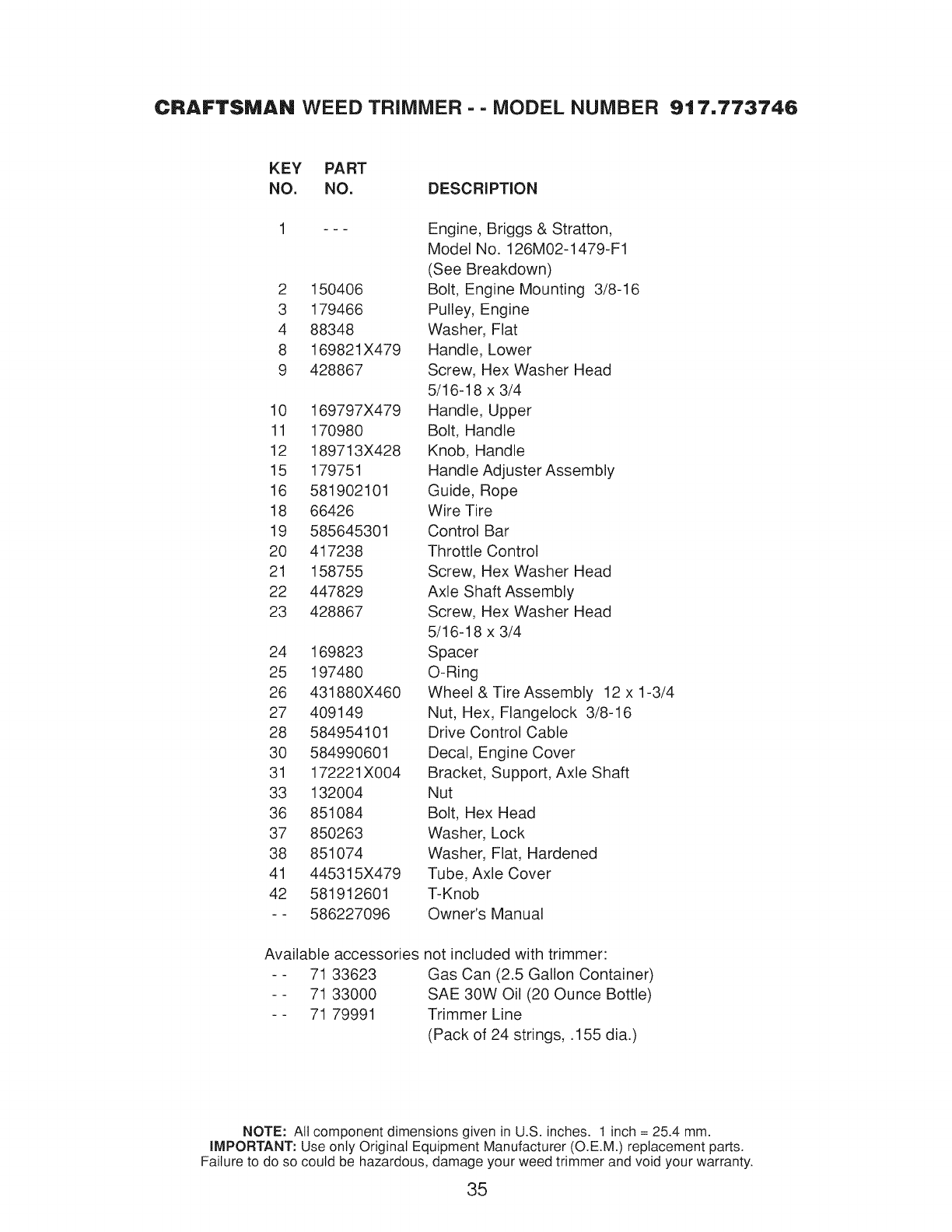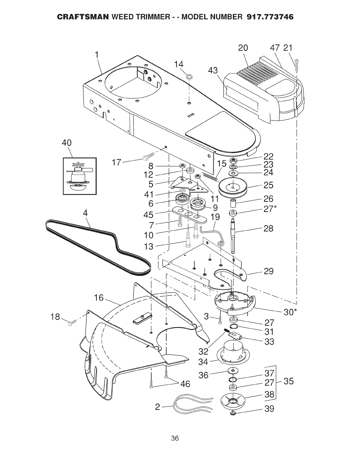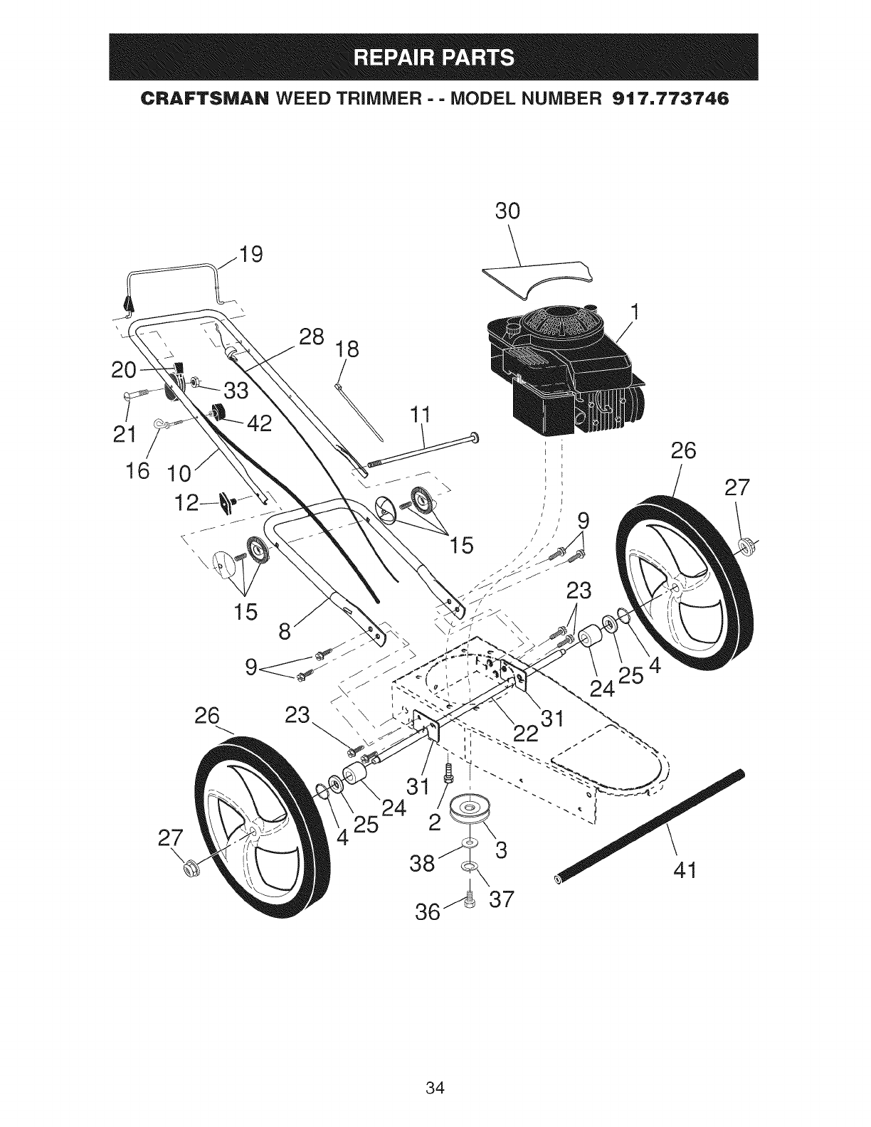 User Manual: Craftsman 917773746 917773746 CRAFTSMAN WHEELED WEEDTRIMMER - Manuals and Guides View the owners manual for your CRAFTSMAN WHEELED WEEDTRIMMER #917773746. Home:Lawn & Garden Parts:Craftsman Parts:917773746 Craftsman Grass trimmer (weed wacker) Manual