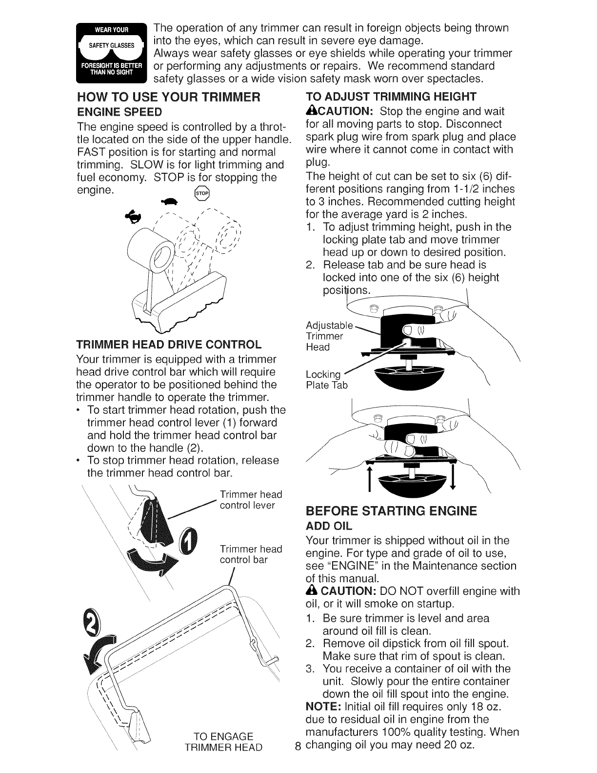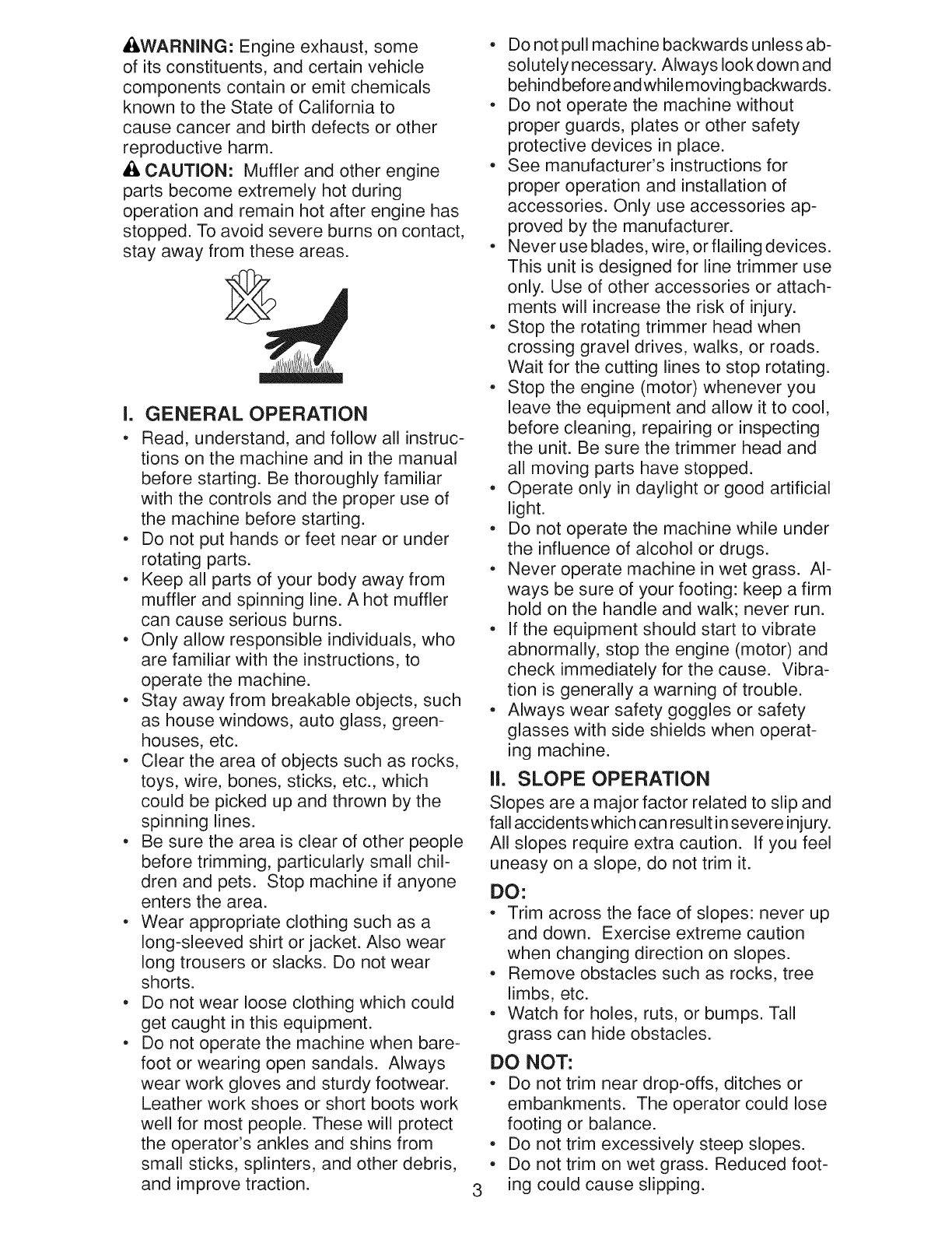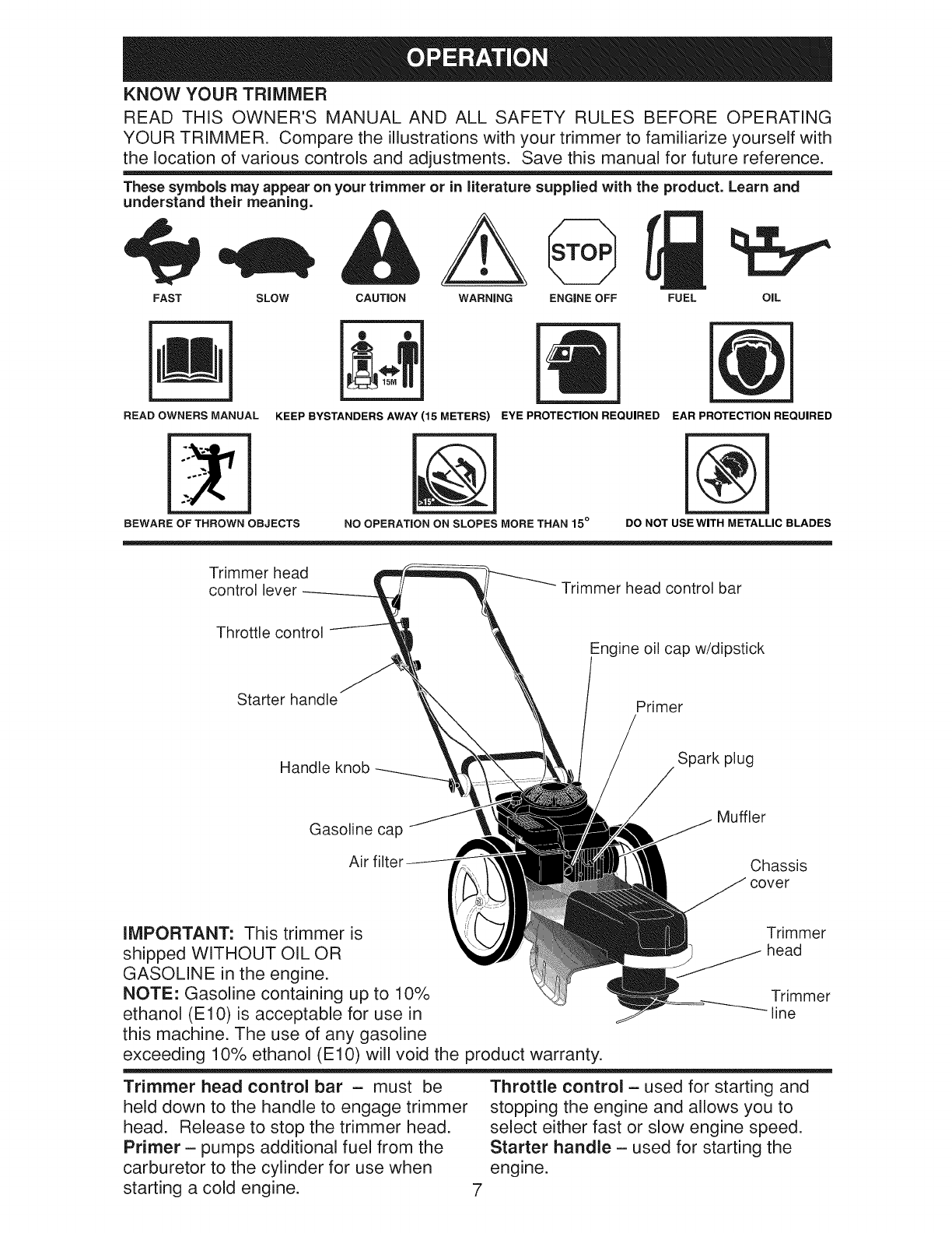_- WARNING" This trimmer is equipped with an internal combustion engine and should