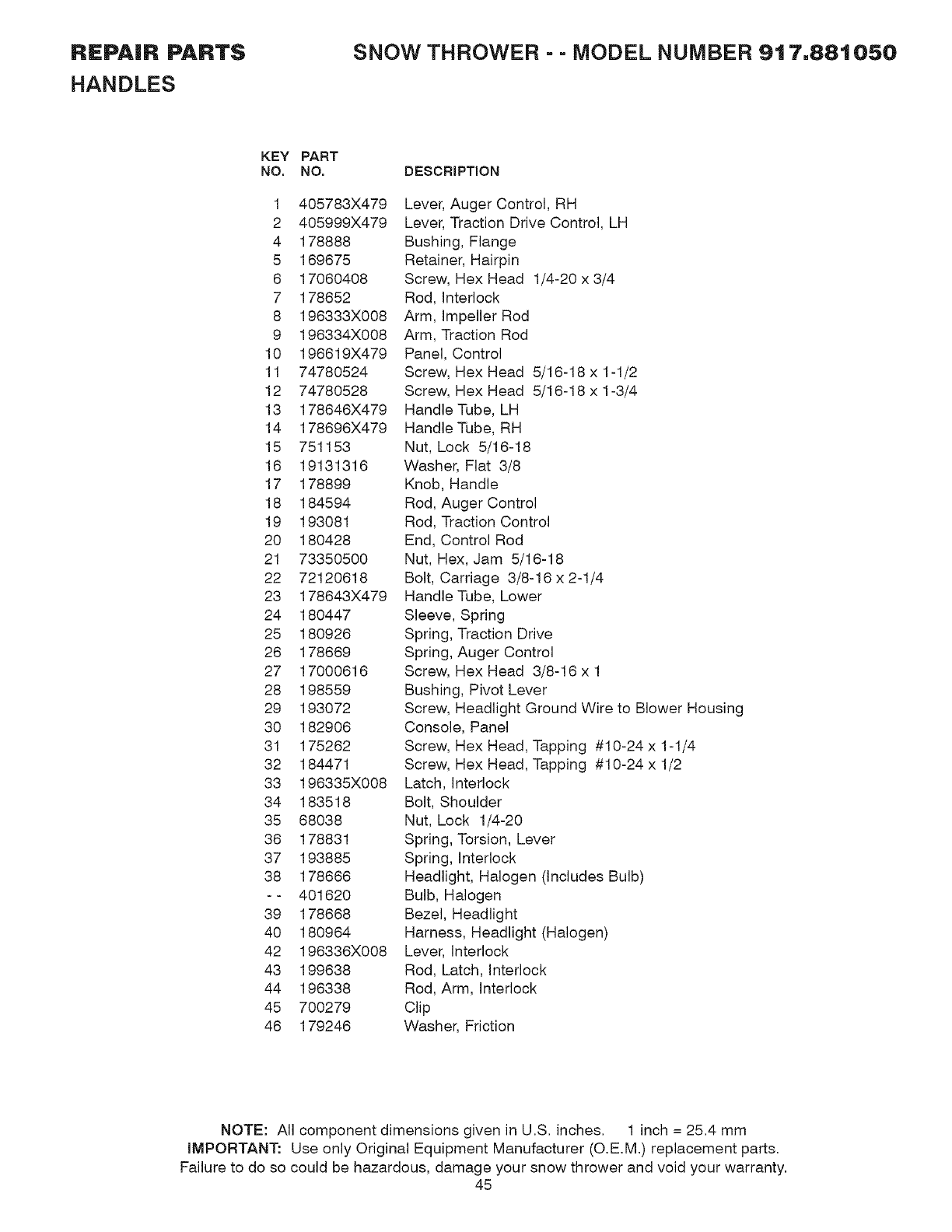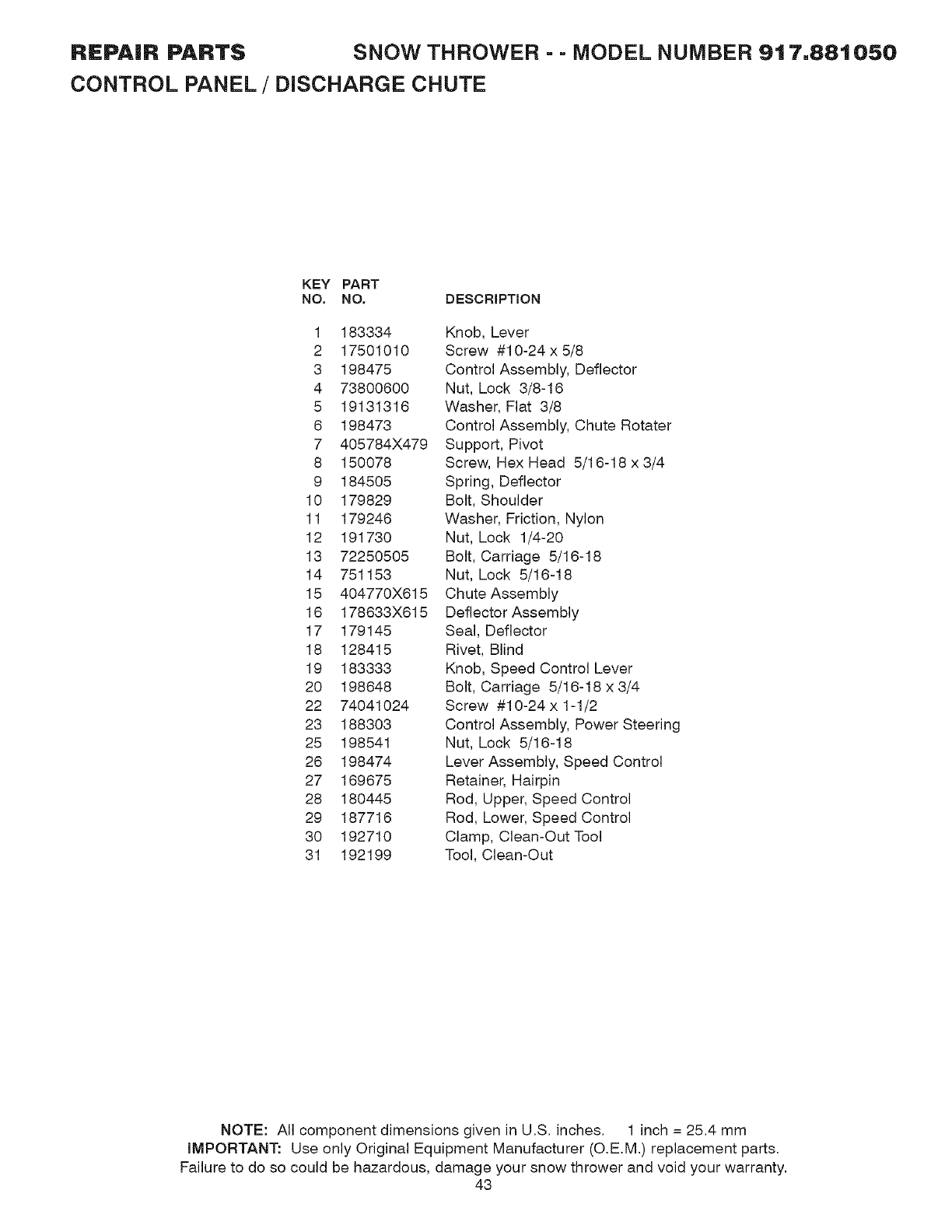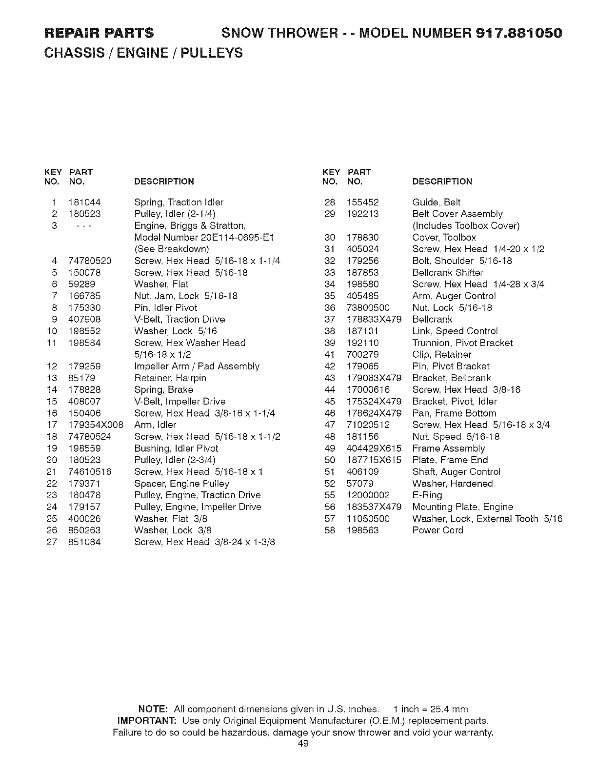 User Manual: Craftsman 917881050 917881050 CRAFTSMAN SNOW THROWER - Manuals and Guides View the owners manual for your CRAFTSMAN SNOW THROWER #917881050. Home:Lawn & Garden Parts:Craftsman Parts:Craftsman SNOW THROWER Manual