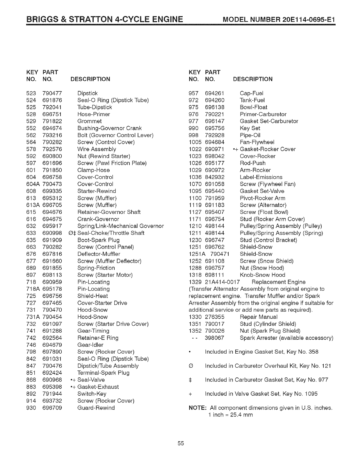 O Included in Carburetor Overhaul Kit, Key No, 121