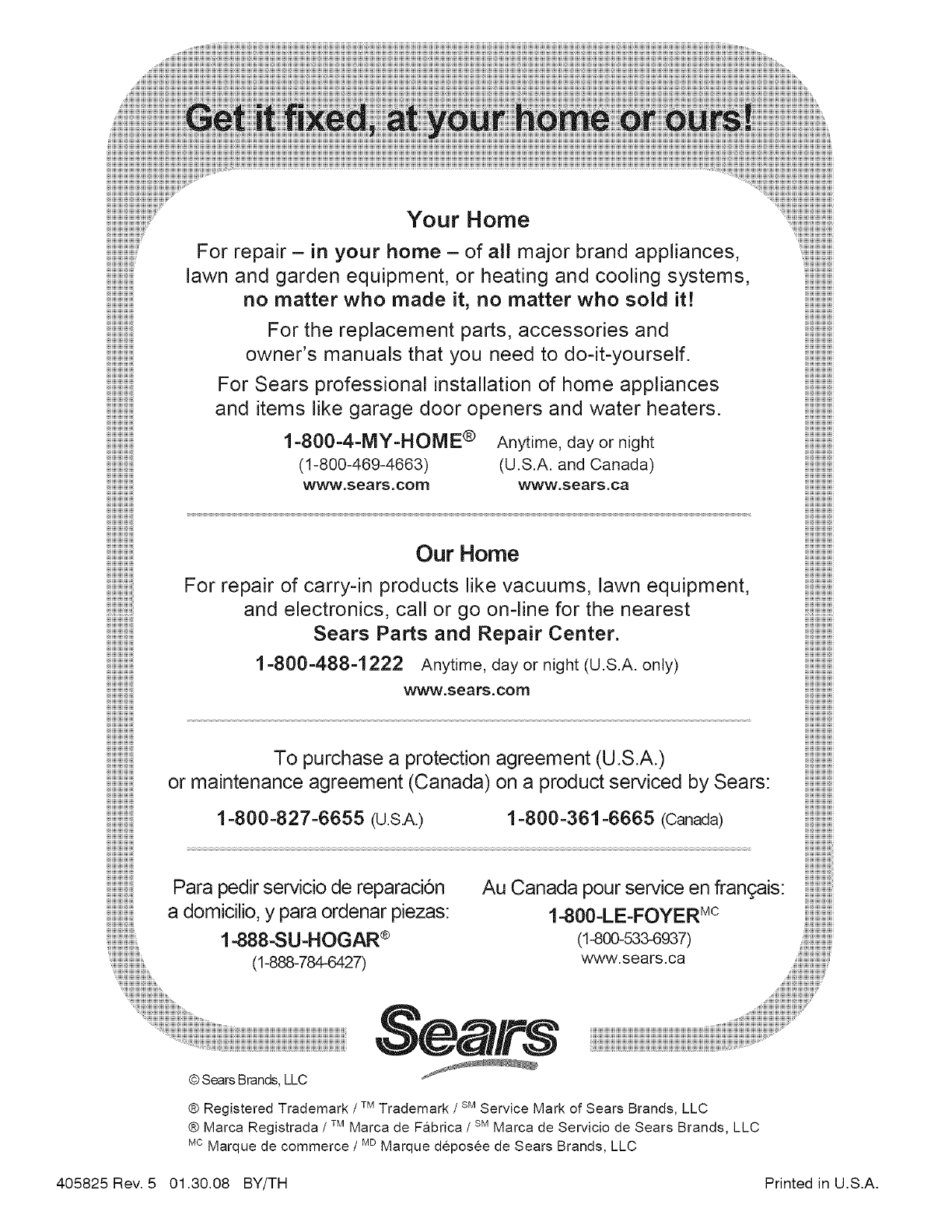 ® Marca Registrada /TMMarca de Fabrica /SMMarca de Servicio de Sears Brands, LLC