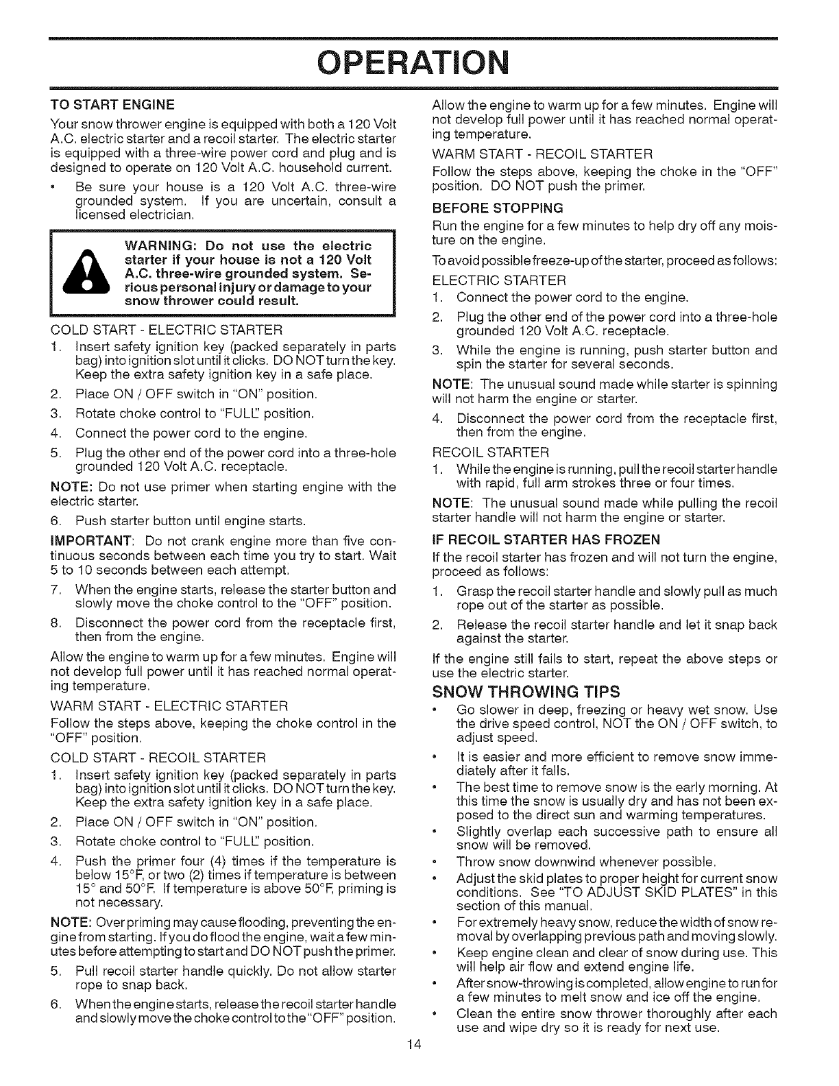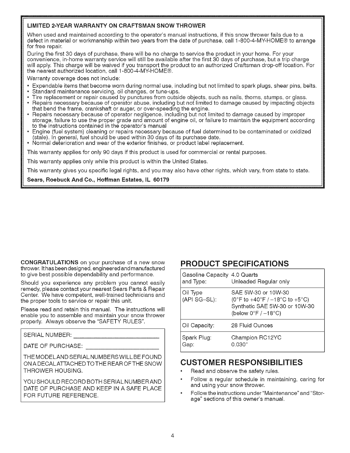 Craftsman 917881050 User Manual SNOW THROWER Manuals And Guides L0802609