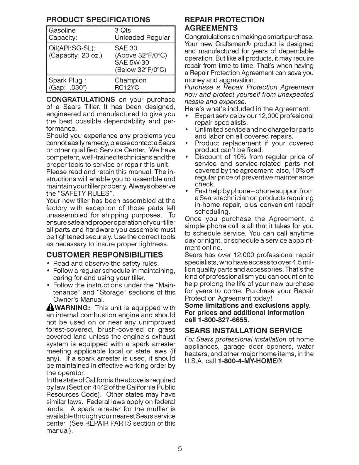 Craftsman 917986940 1211098L User Manual TILLER Manuals And Guides