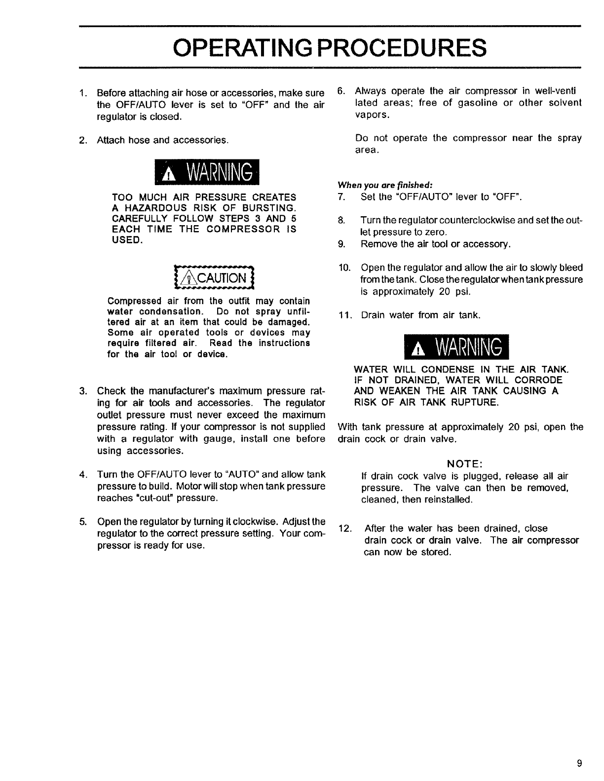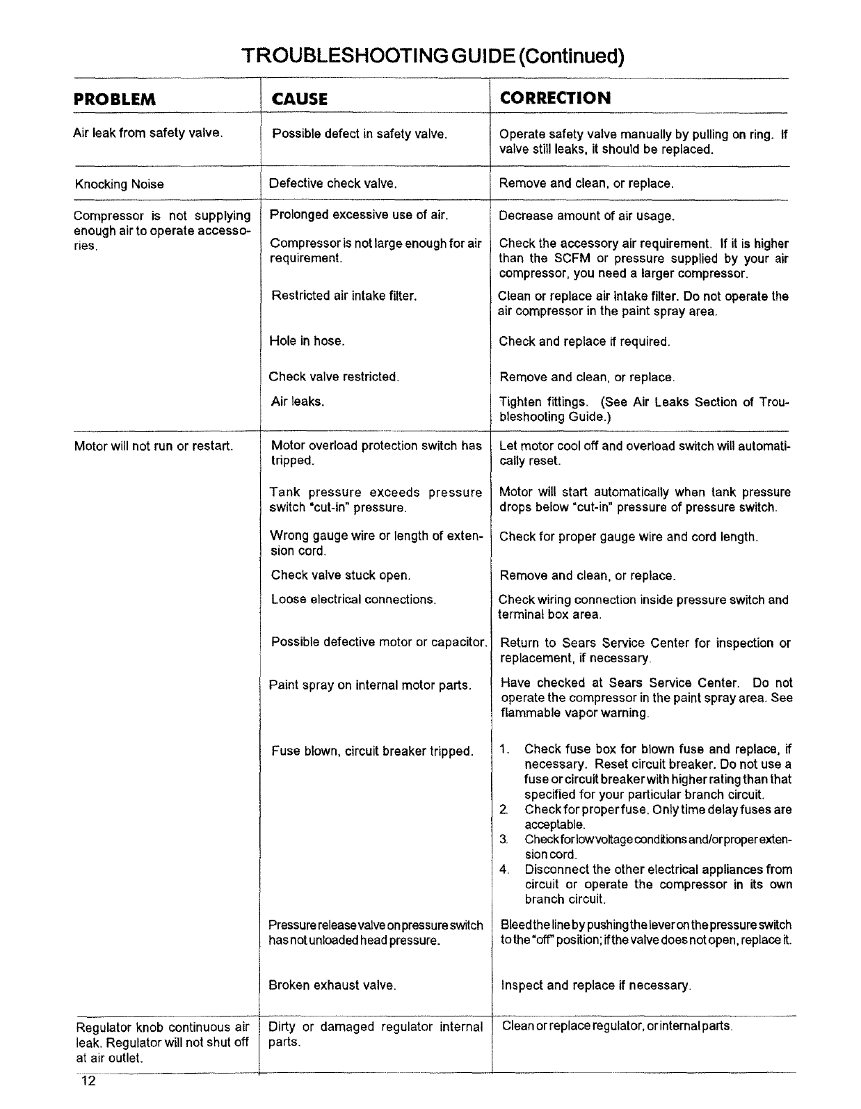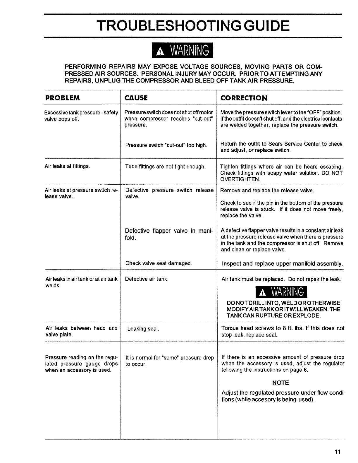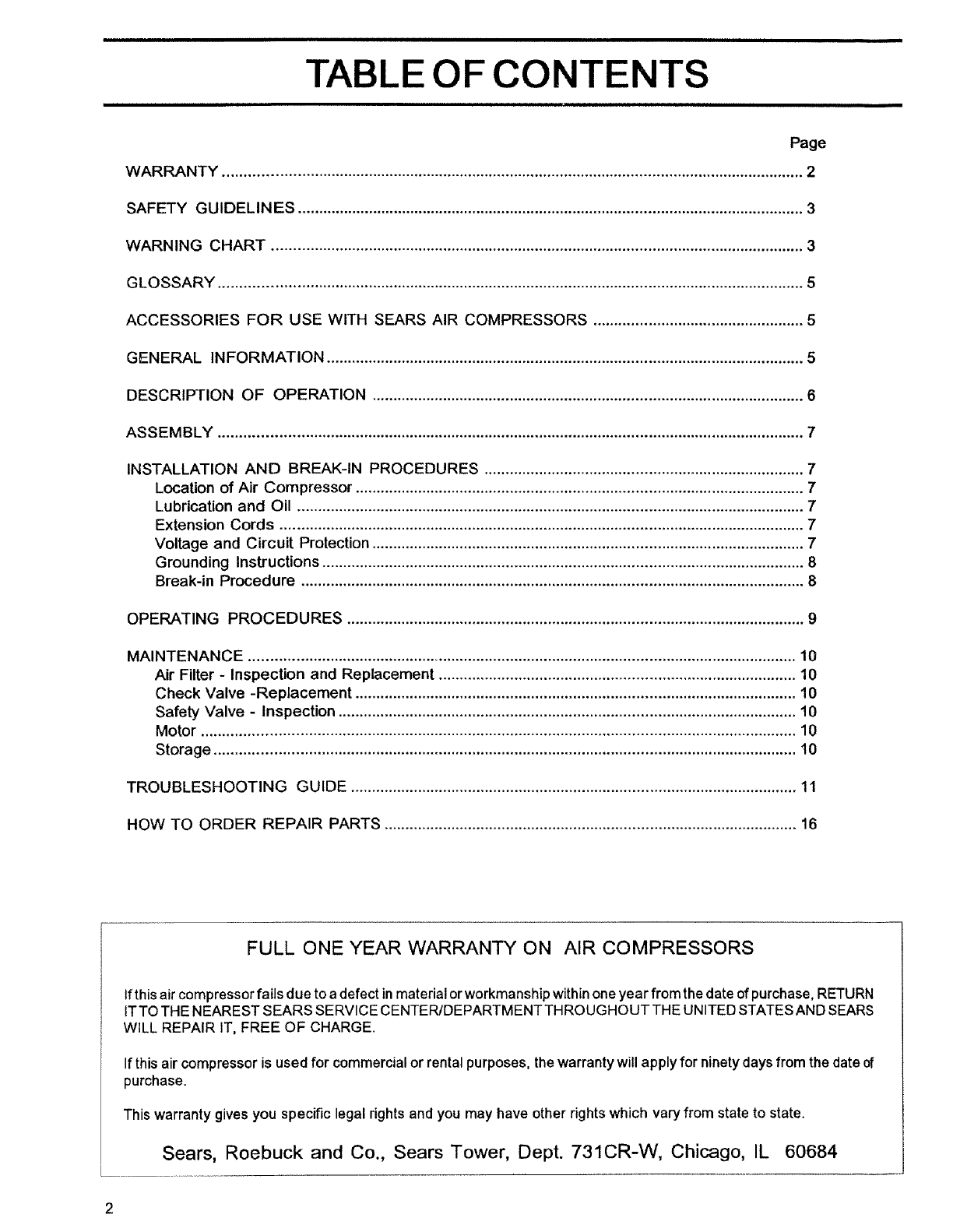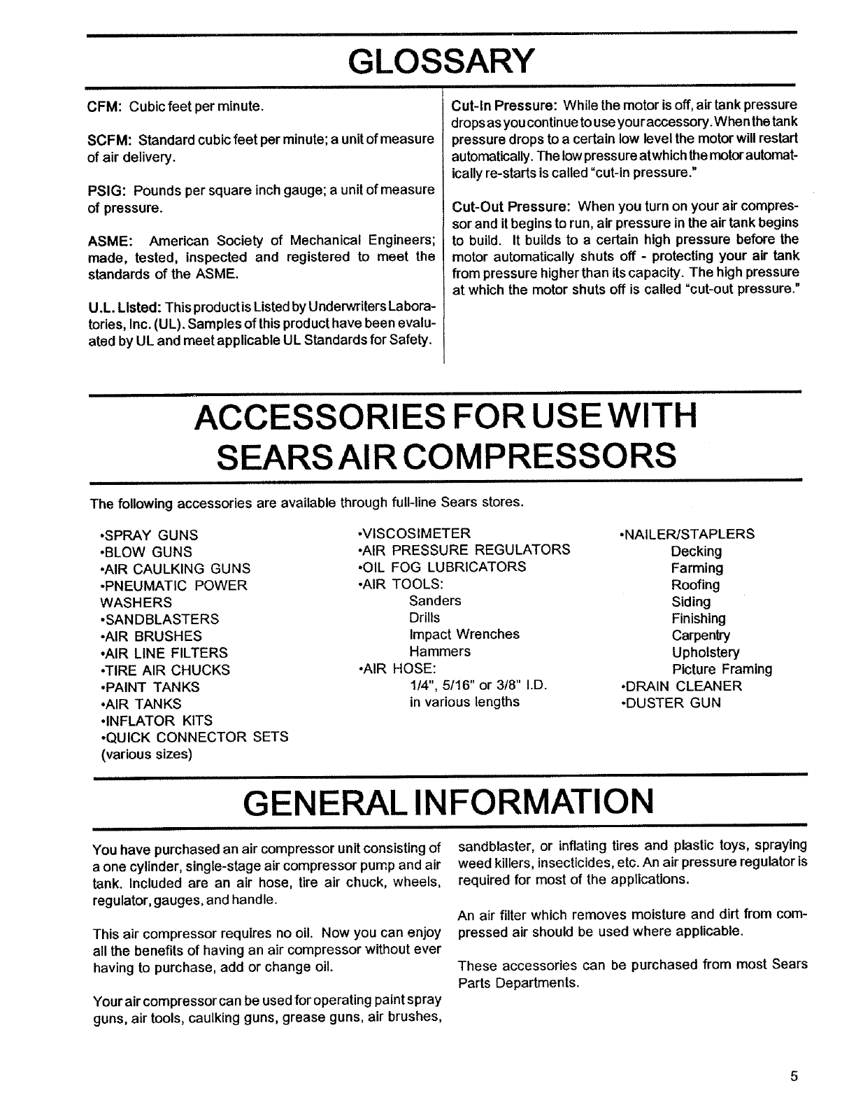 ACCESSORIES FOR USE WITH SEARS AIR COMPRESSORS .................................................. 5