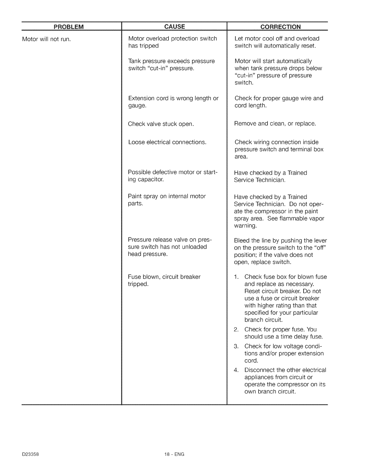 If this air compressor is used for commercial or rental purposes, the warranty will apply for ninety days