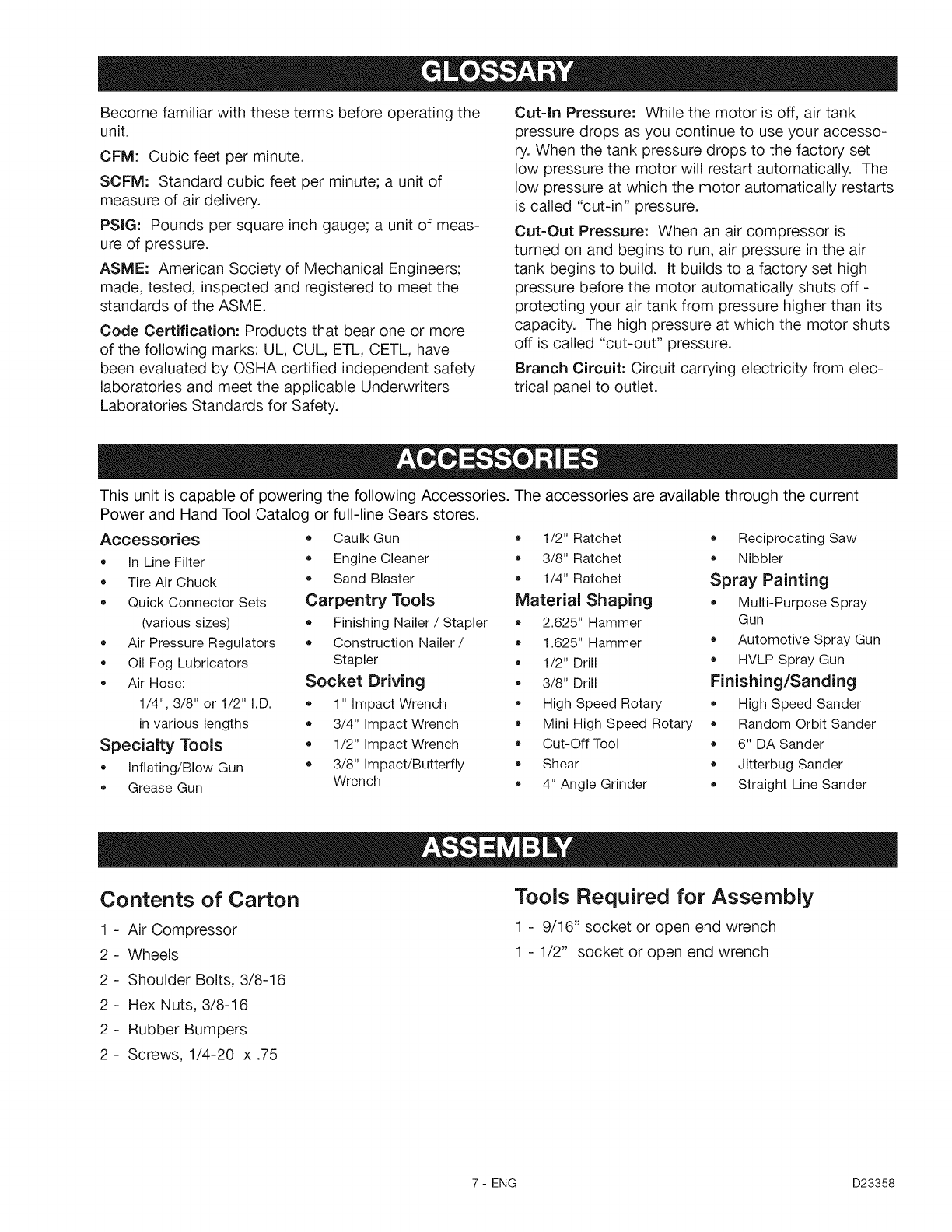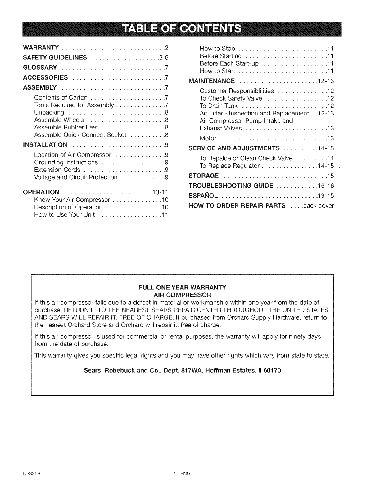 Craftsman 919167310 User Manual AIR COMPRESSOR Manuals And Guides L0901045