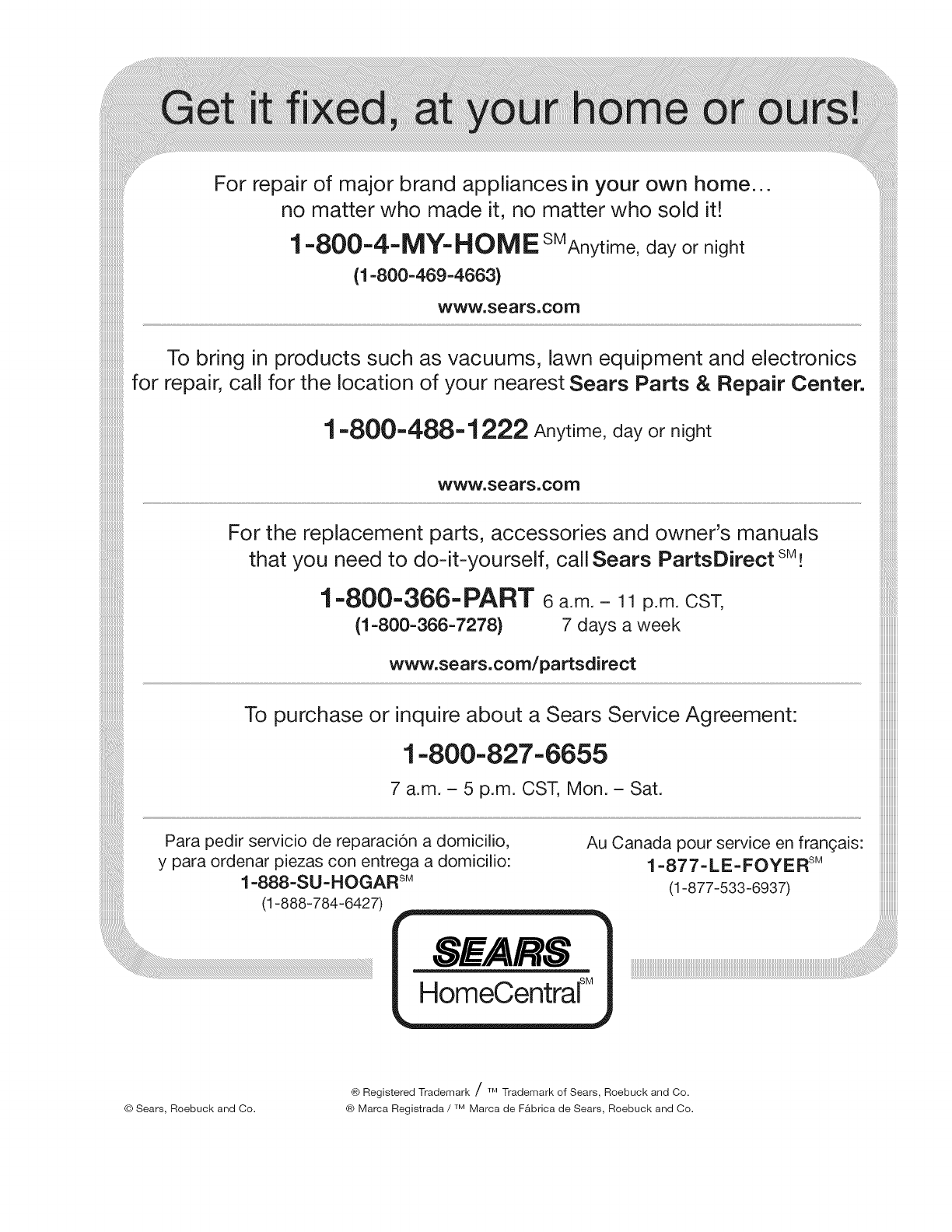 ®) Registered Trademark /TMTrademark of Sears, Roebuck and Co.