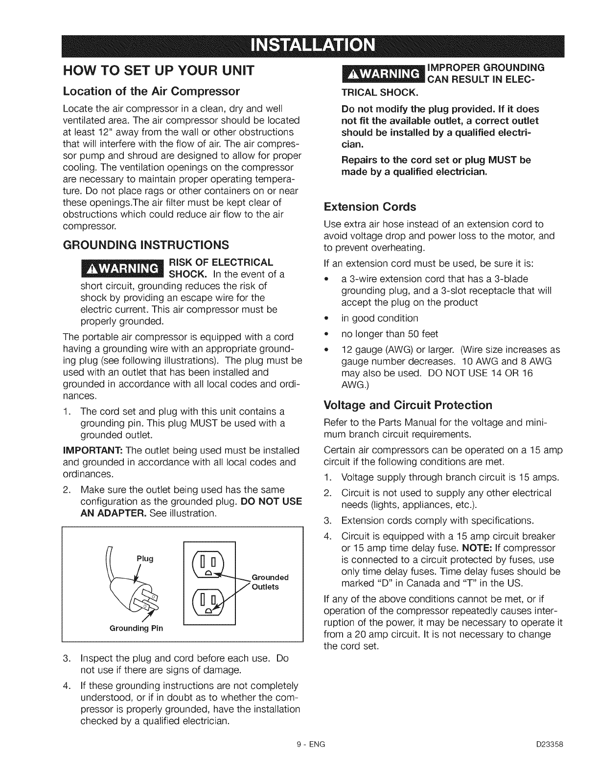 CRAFTSMAN Air compressor Manual L0901045 CRAFTSMAN Air compressor Owner's Manual, CRAFTSMAN Air compressor installation guides
