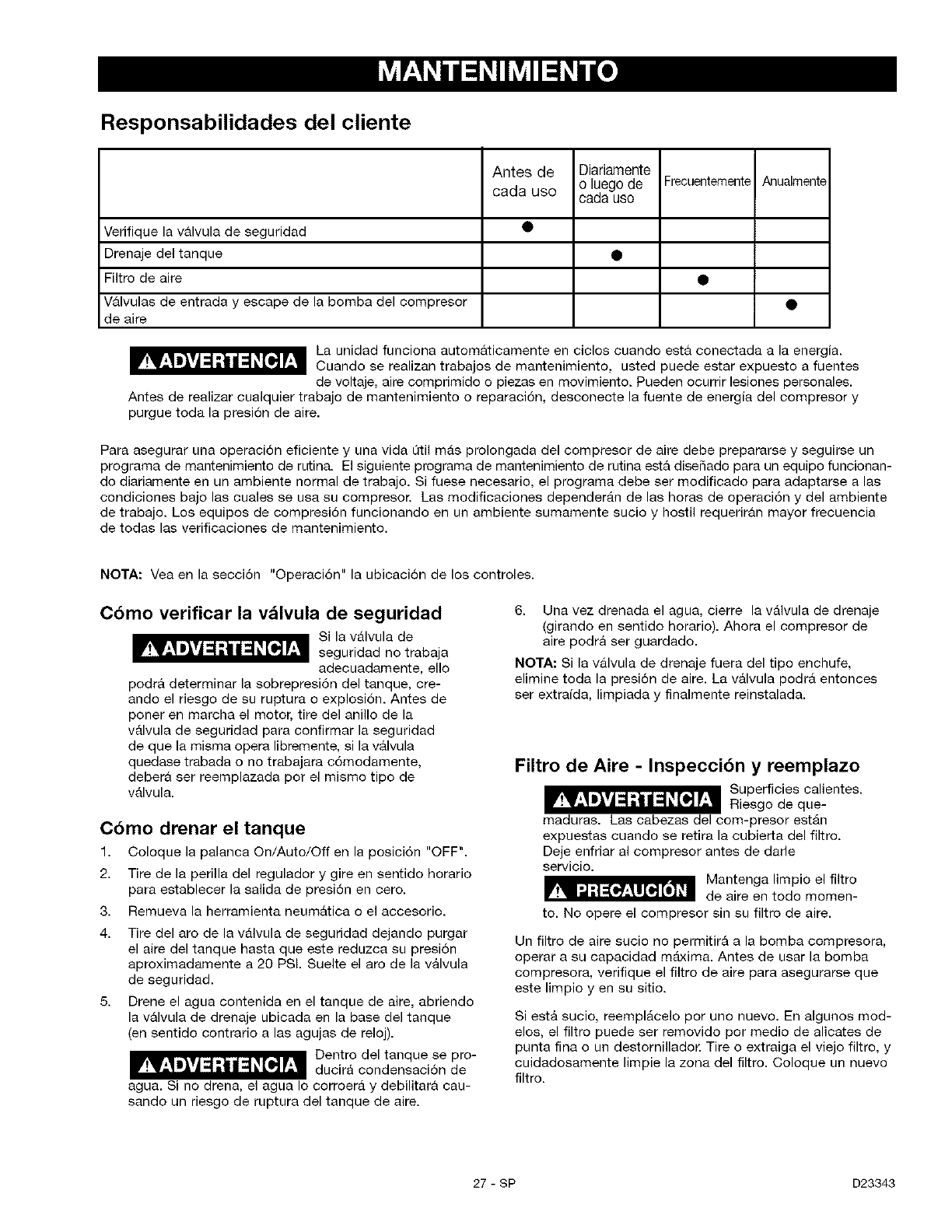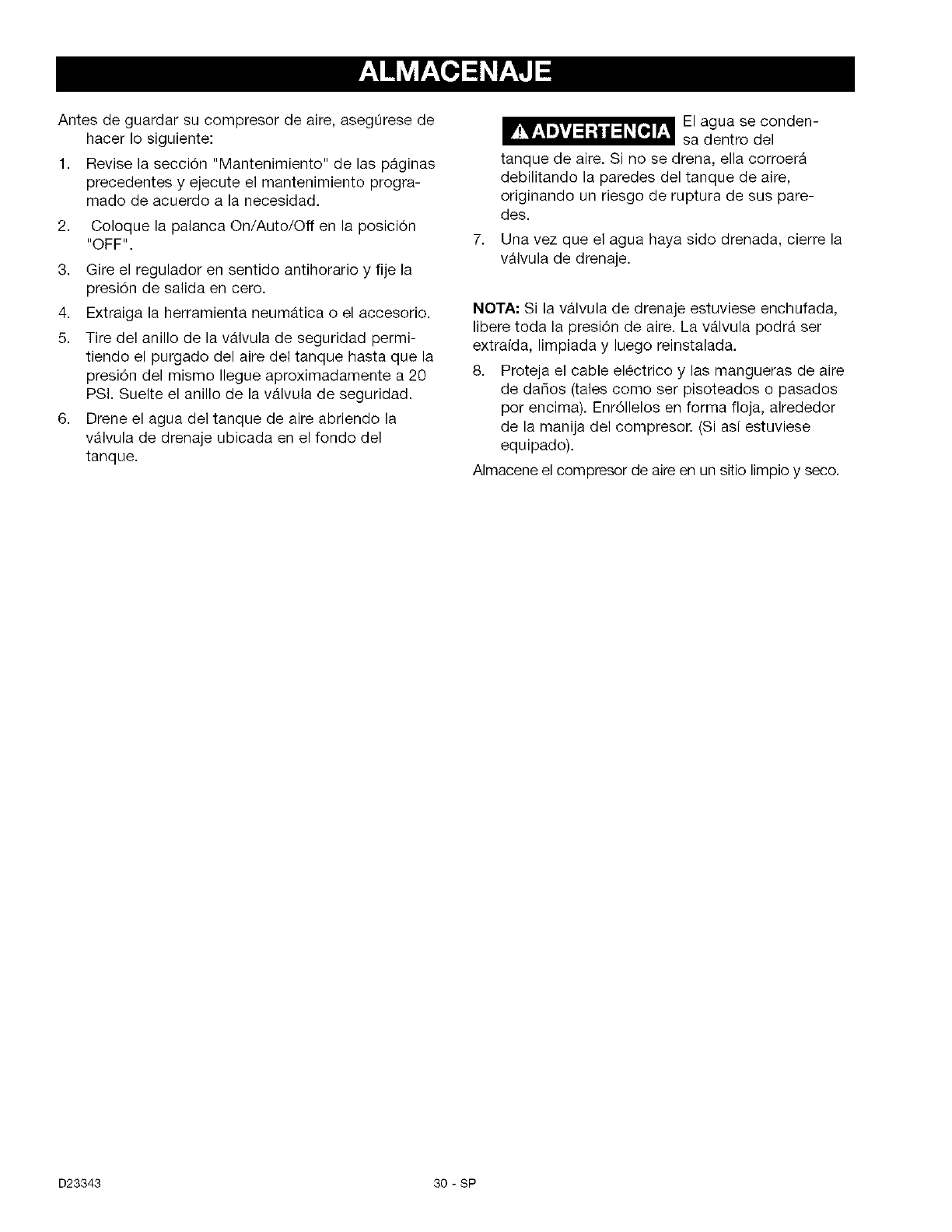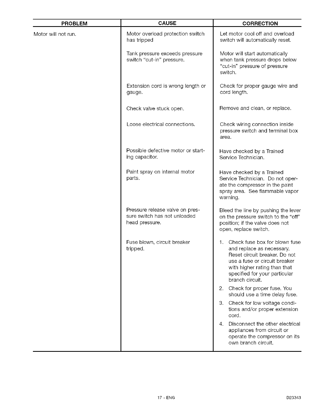 If this air compressor is used for commercial or rental purposes, the warranty will apply for ninety days