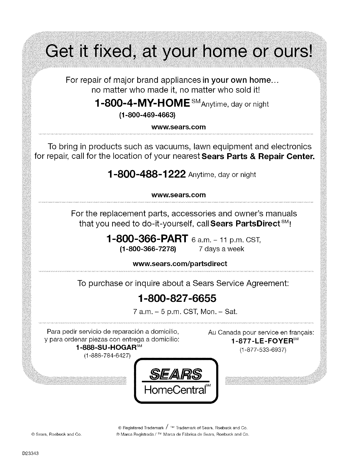 .................................................................. www:sears.com ...............................................................