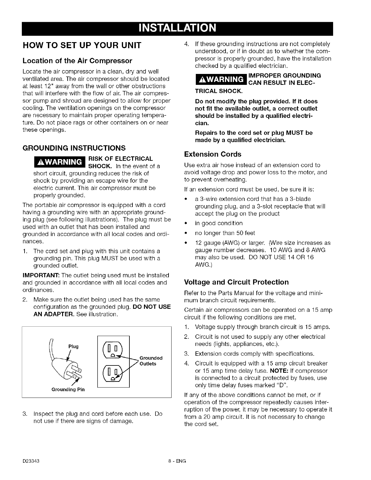 Grounding Instructions ......................................... 8