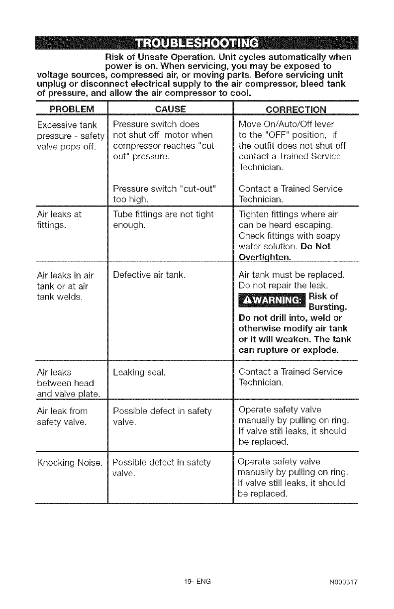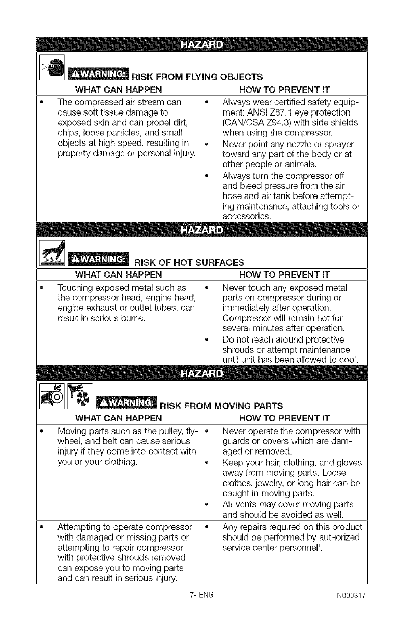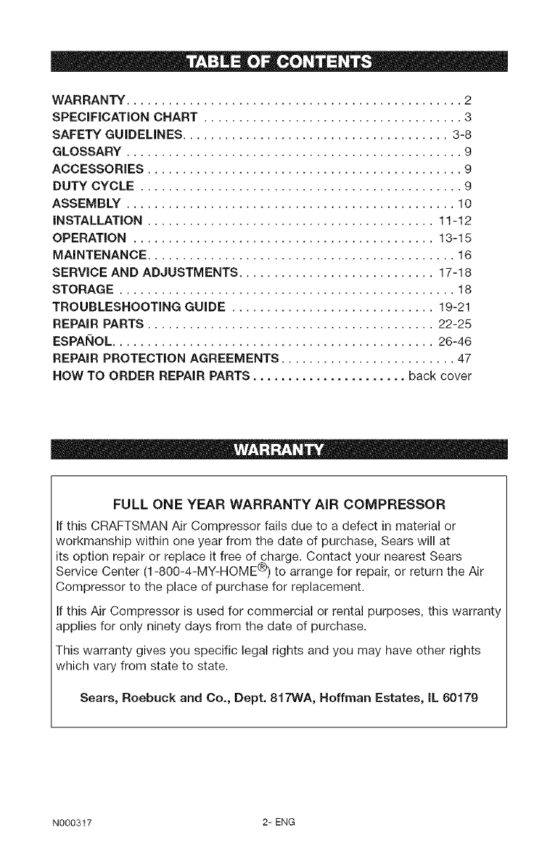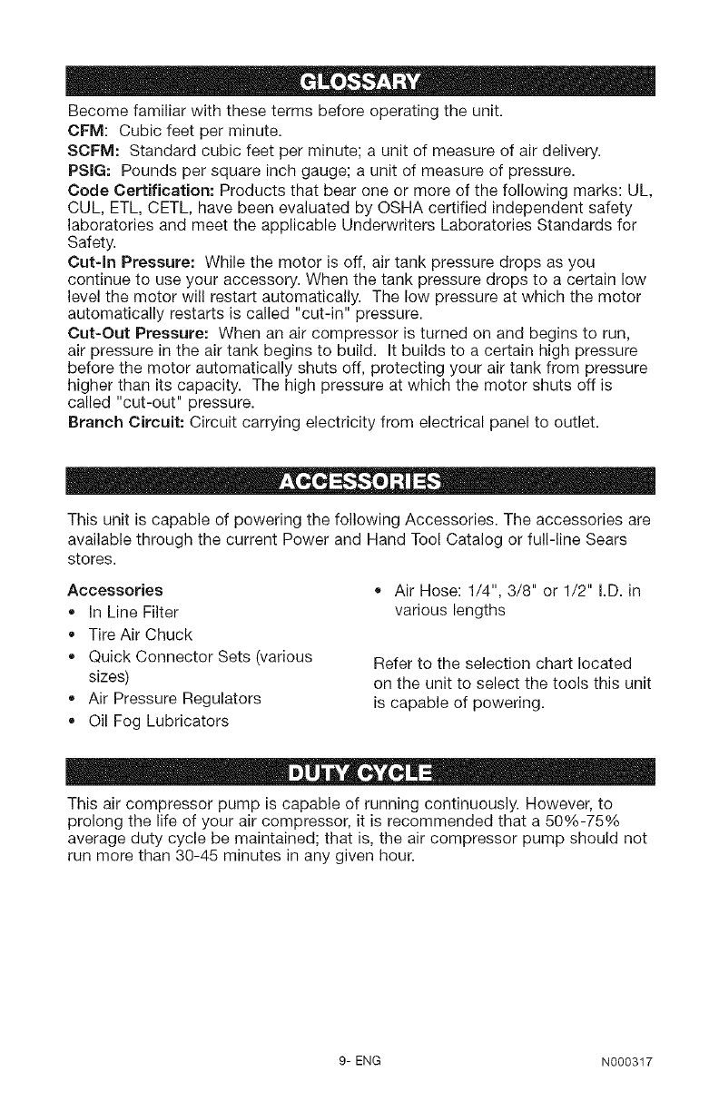 Craftsman 919167370 User Manual AIR COMPRESSOR Manuals And Guides L0803555