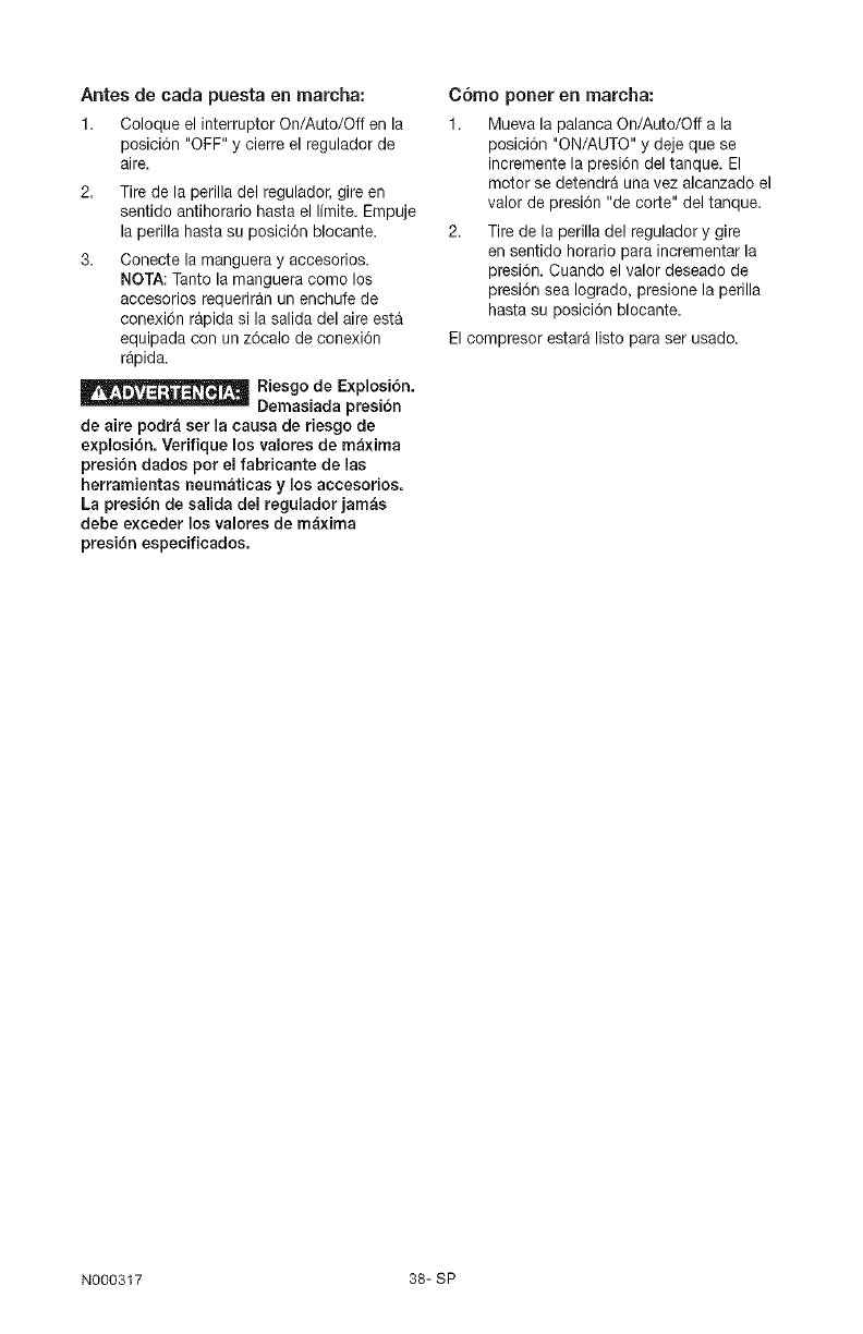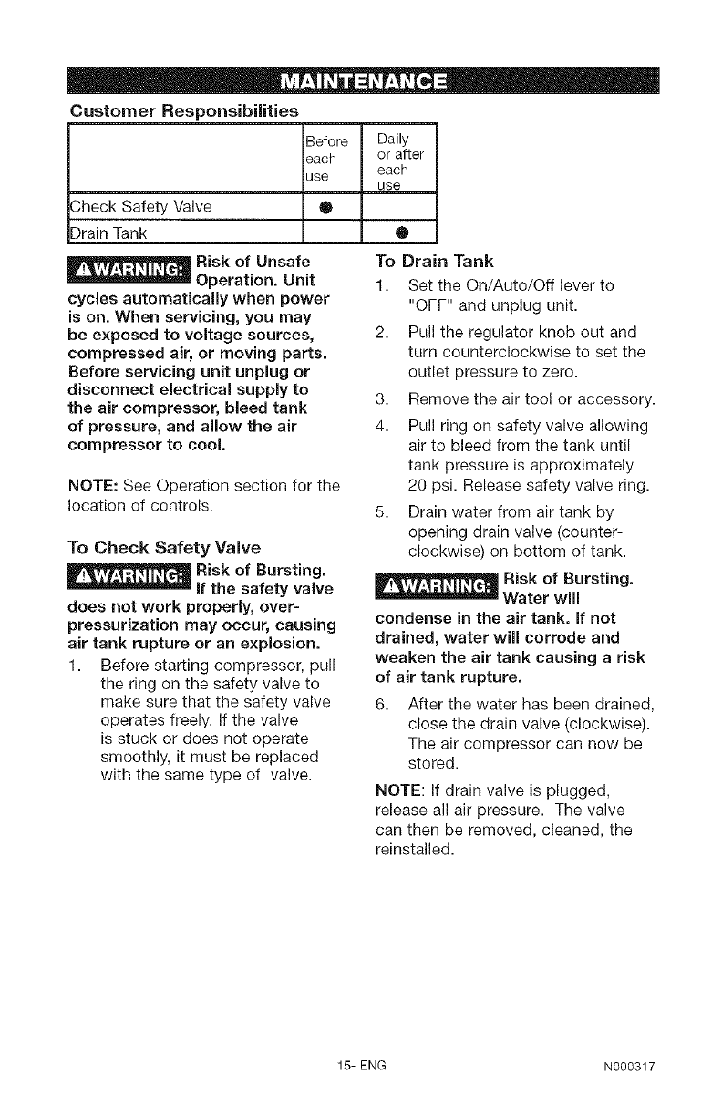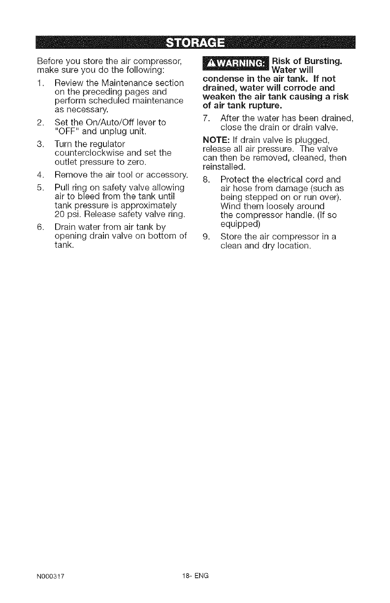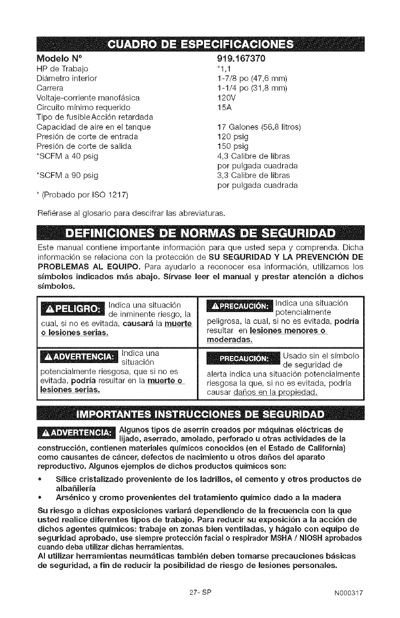Craftsman 919167370 User Manual AIR COMPRESSOR Manuals And Guides L0803555