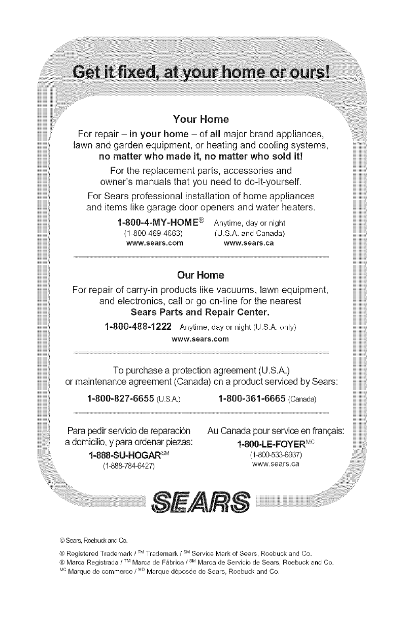 ® Registered Trademark /Trademark /Service Mark of Sears, Roebuck and Co.