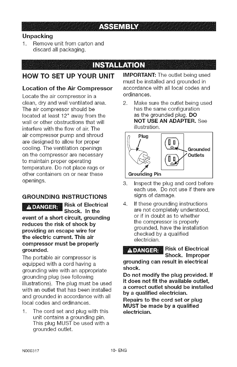 CRAFTSMAN Air compressor Manual L0803555 CRAFTSMAN Air compressor Owner's Manual, CRAFTSMAN Air compressor installation guides