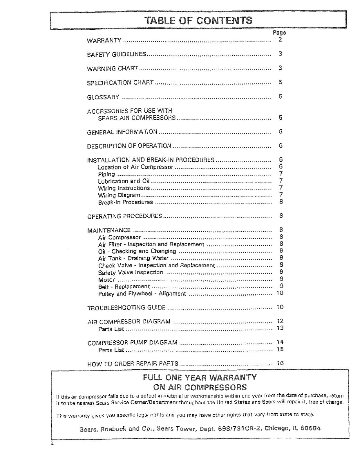 SEARS AIR COMPRESSORS ................................................ 5