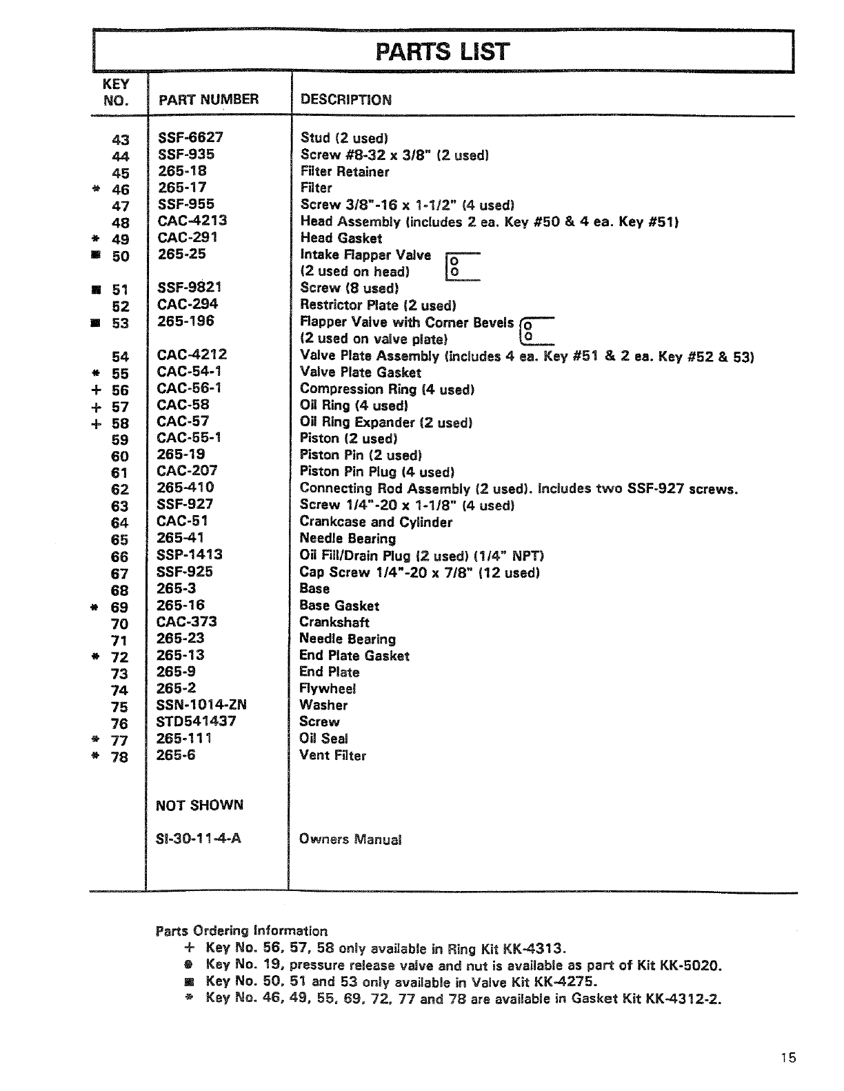 Key NOo 4.6, 49, 55, 69, 72, 77 and 78 are available in Gasket Kit KK-4312-2.