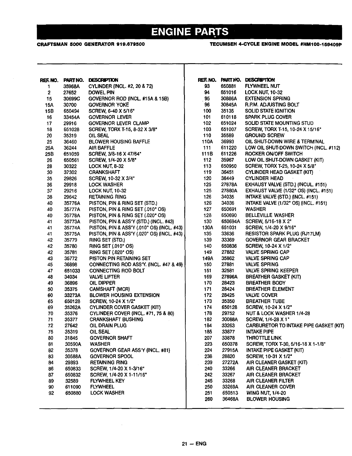 FULL ONE YEAR WARRANTY ON CRAFTSMAN ENGINE