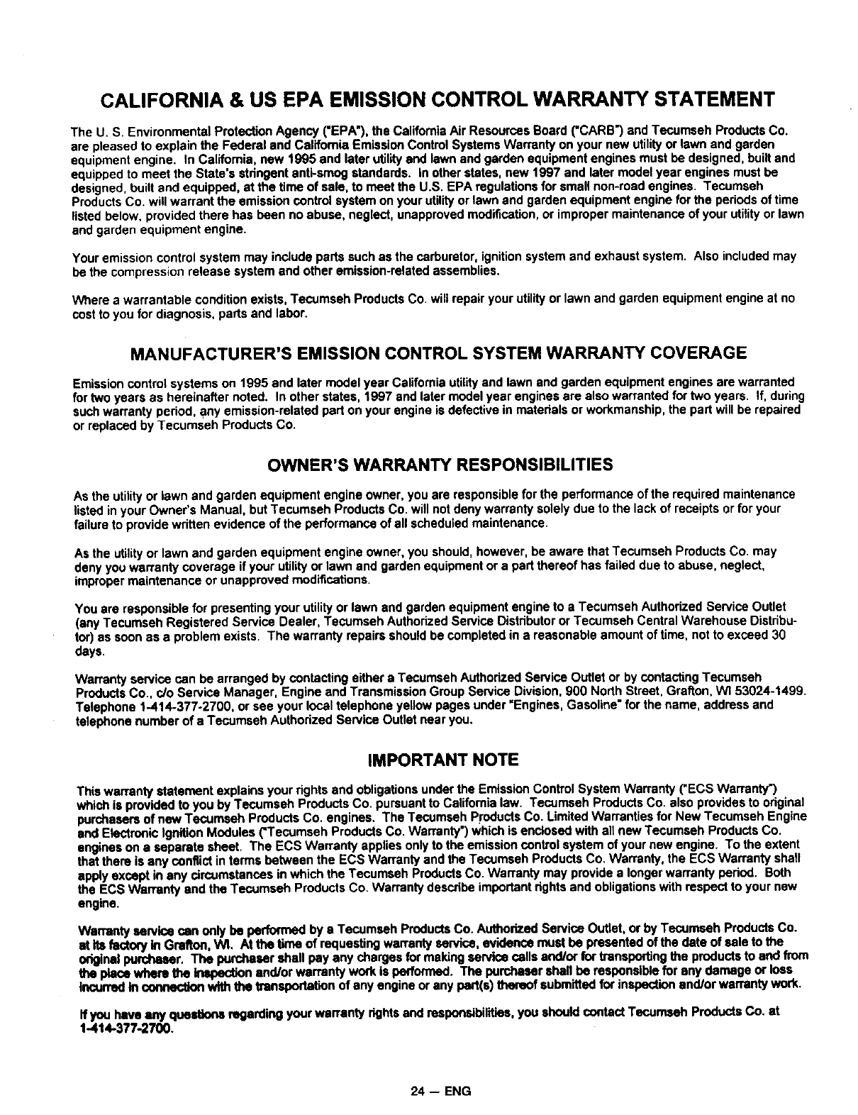 the ECS Wenanty and the Tecumseh Products Co. Warranty describe important rights and obligations with respect to your new
