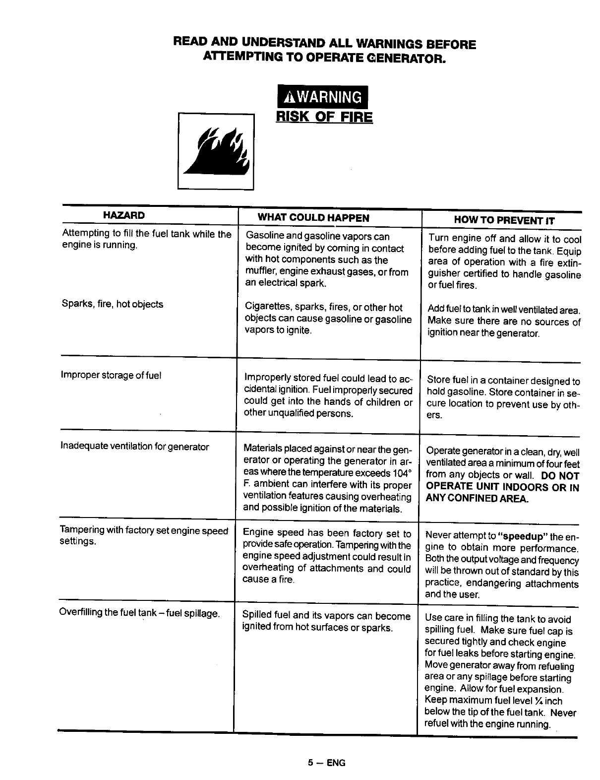 being supplied tothe engine or failure to maintain the equipment according to the instructions con-