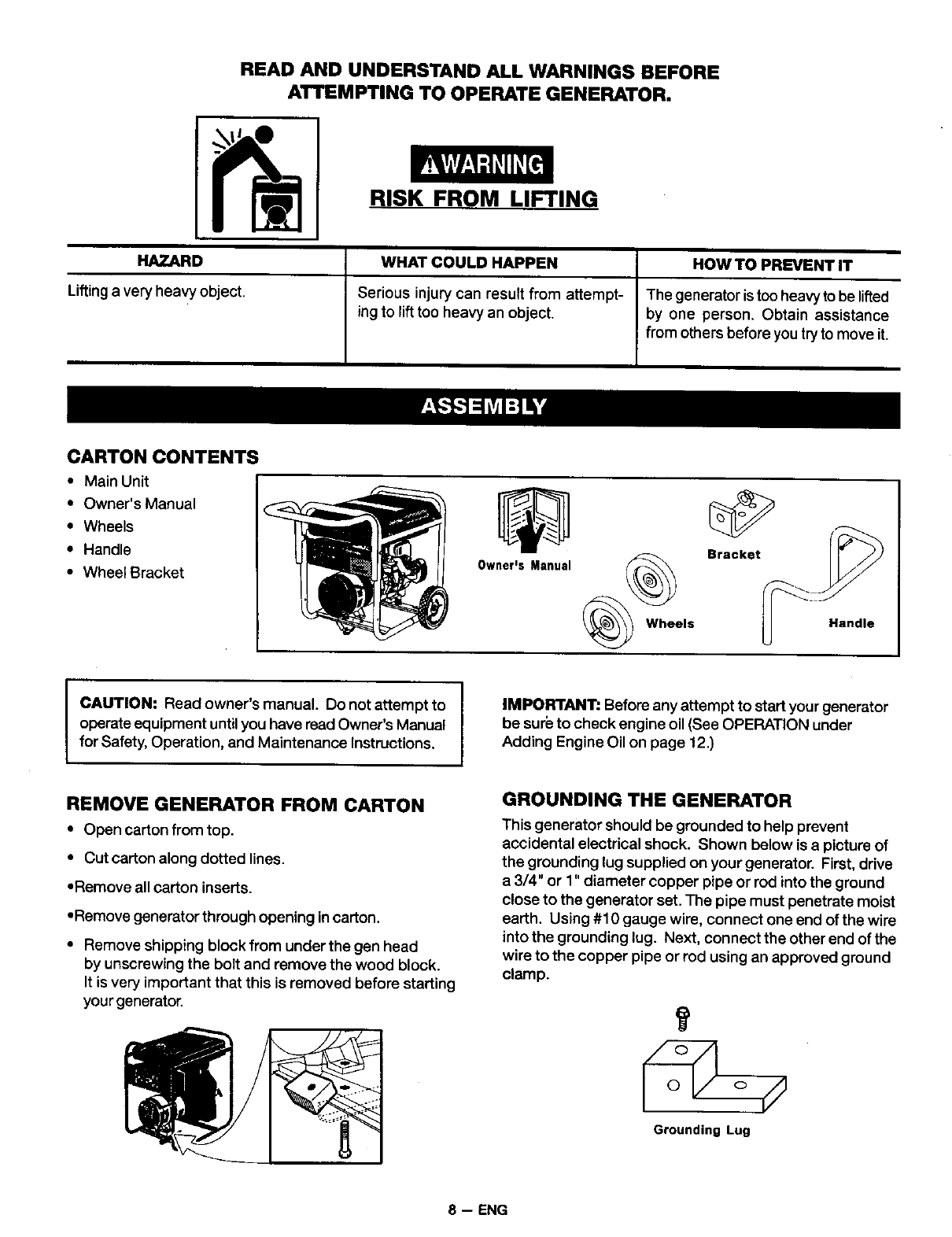 CRAFTSMAN Generator Manual L0010032 CRAFTSMAN Generator Owner's Manual, CRAFTSMAN Generator installation guides