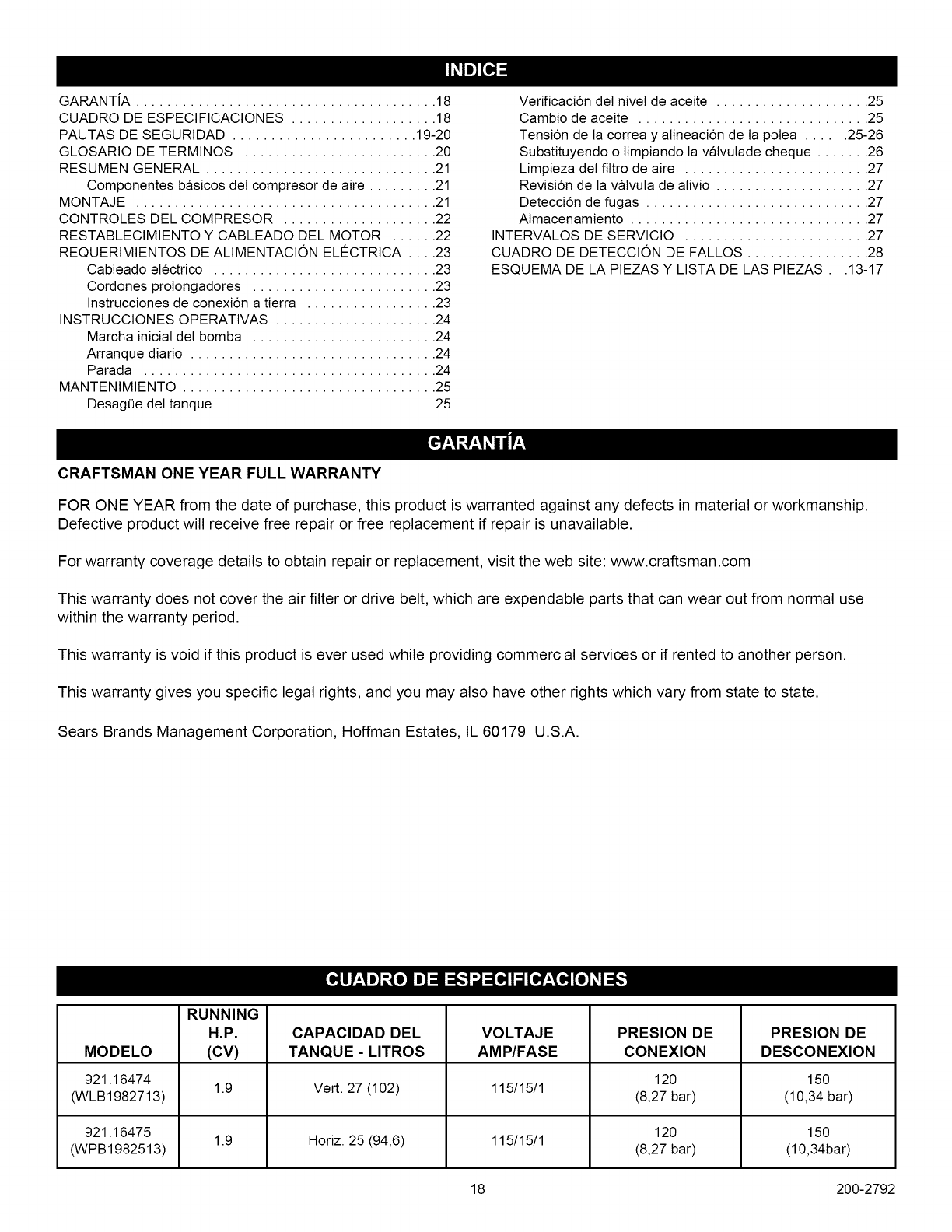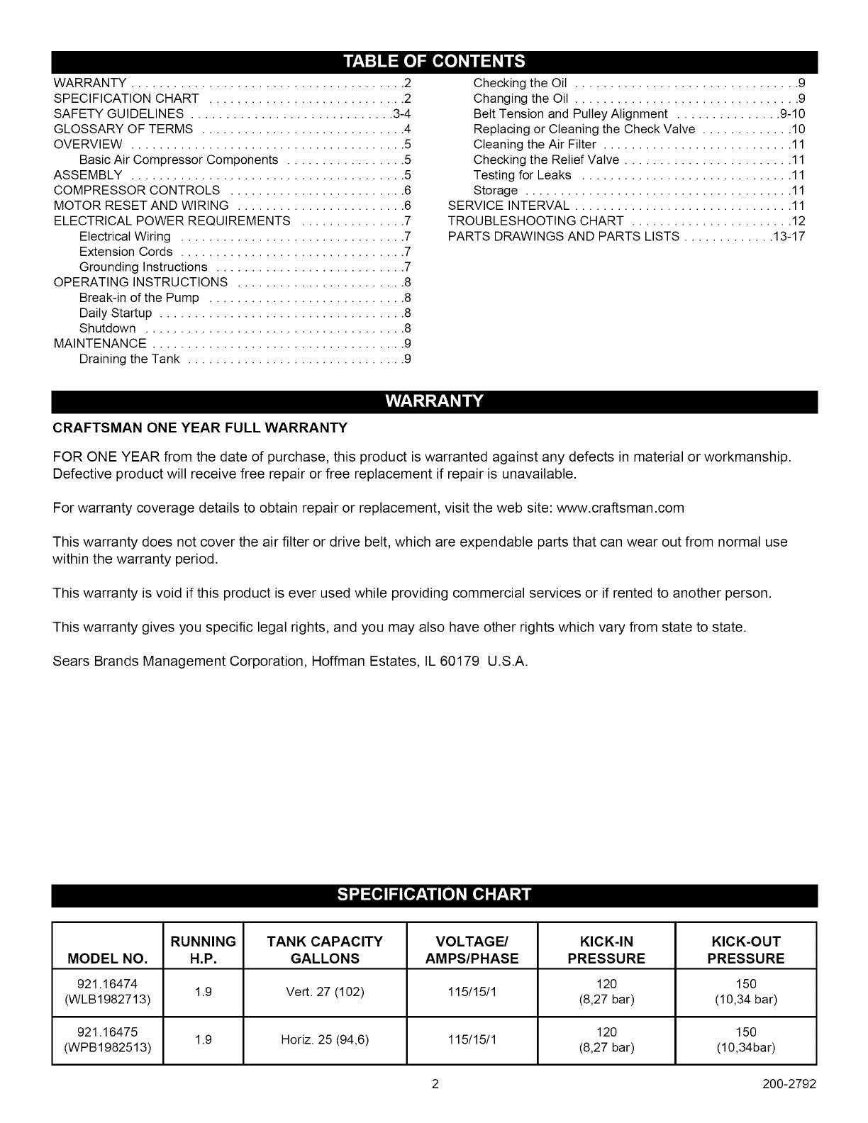 Craftsman 92116474 User Manual COMPRESSOR Manuals And Guides 1006579L