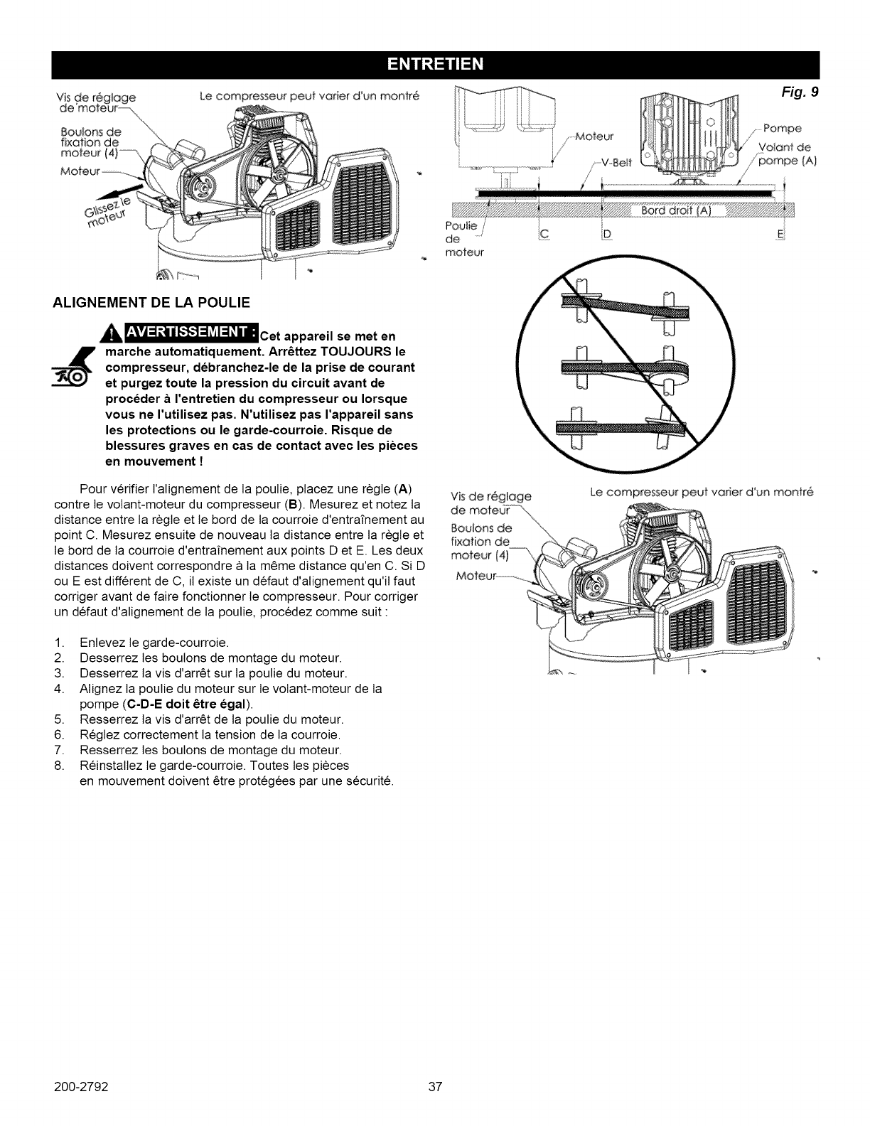 Resserrez la poulie et le volant-moteur. Verifiez l'alignement.