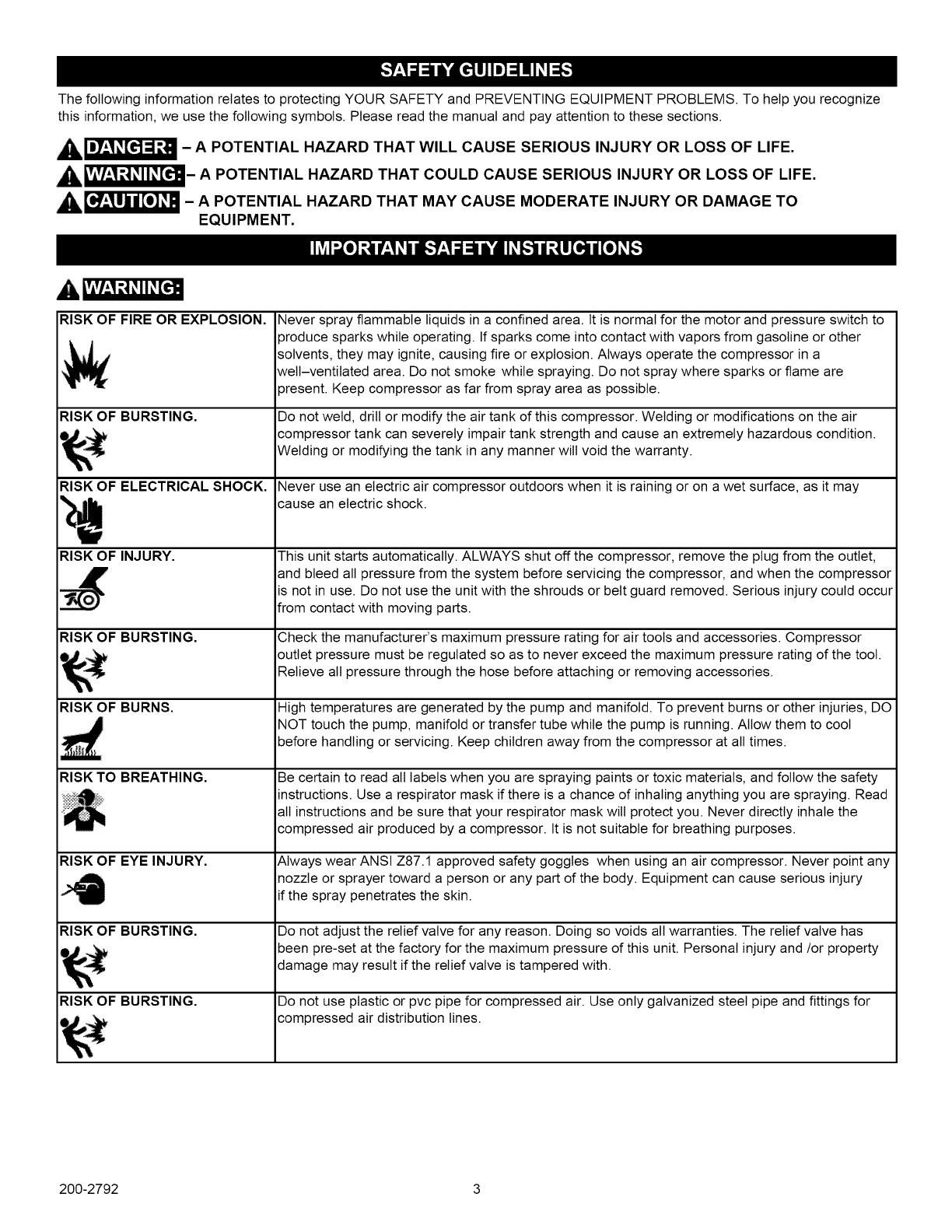 solvents, they may ignite, causing fire or explosion. Always operate the compressor in a