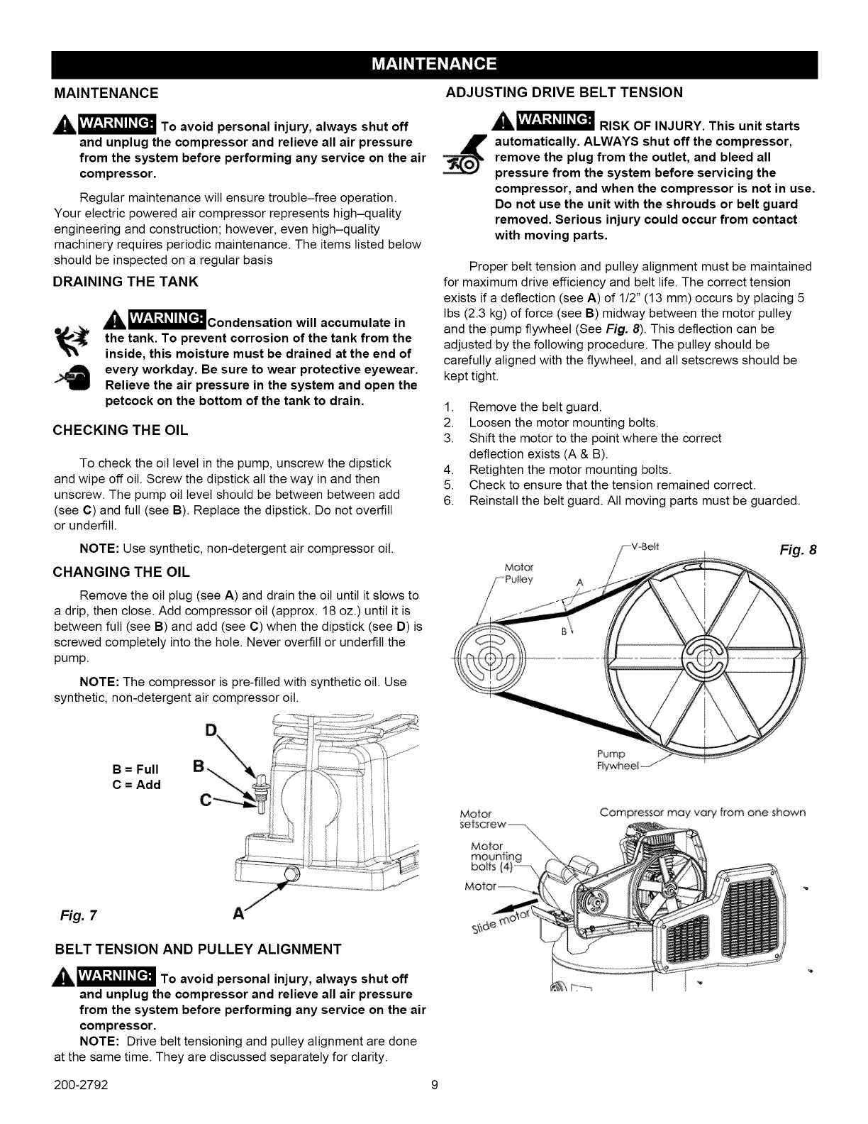 Do not weld, drill or modify the air tank of this compressor. Welding or modifications on the air