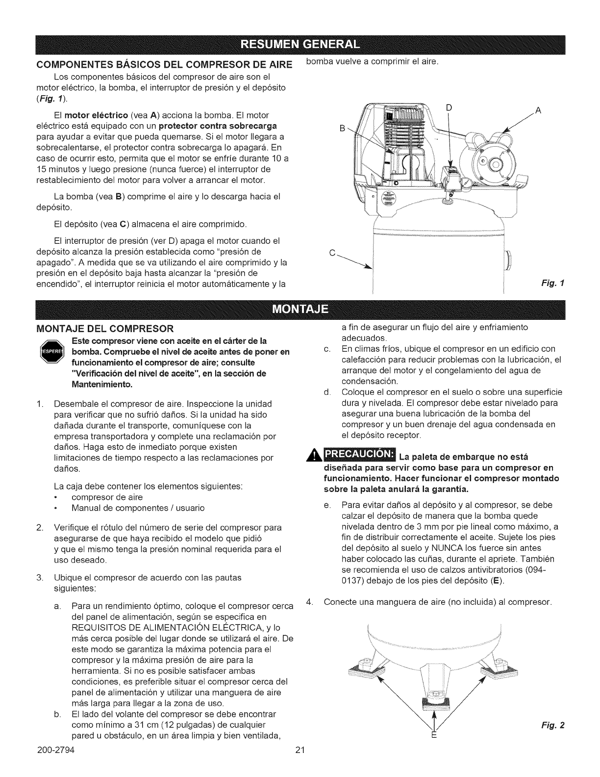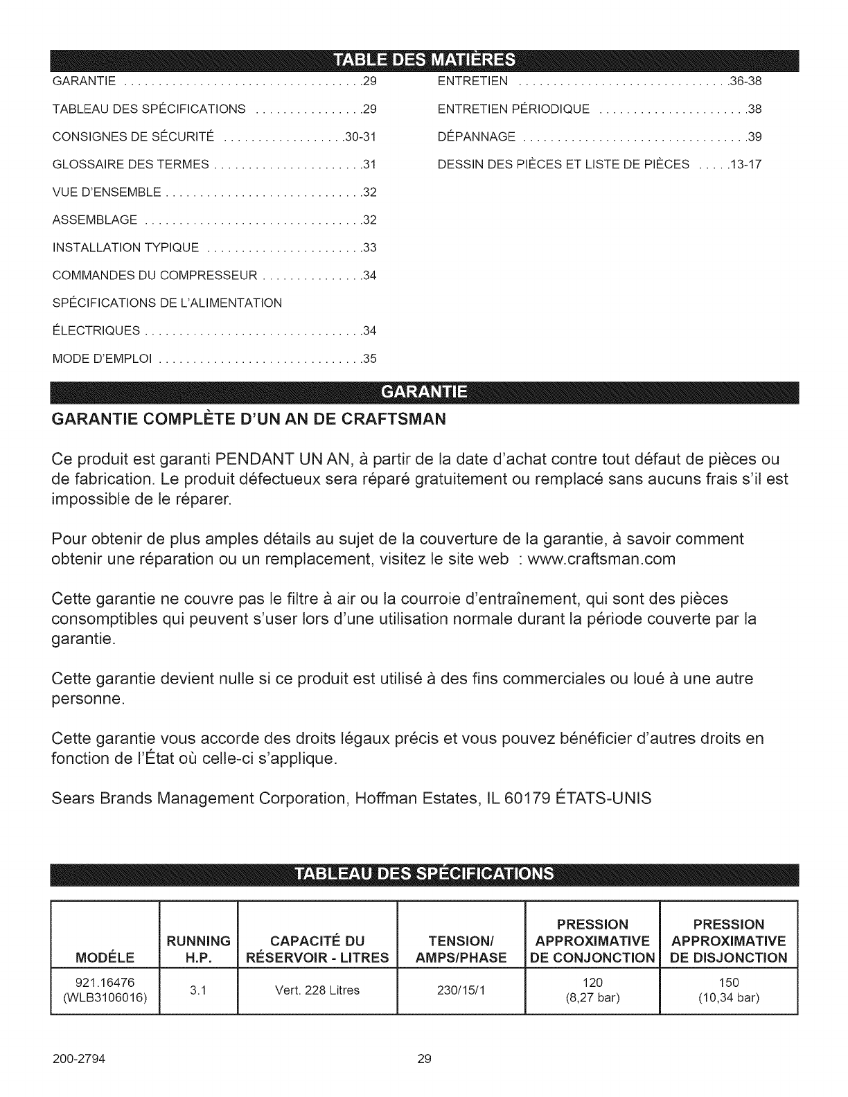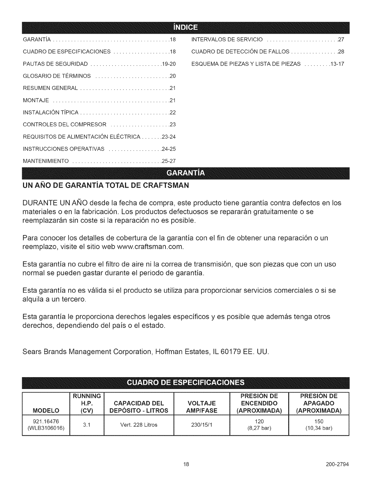 Craftsman 92116476 User Manual COMPRESSOR Manuals And Guides 1007089L